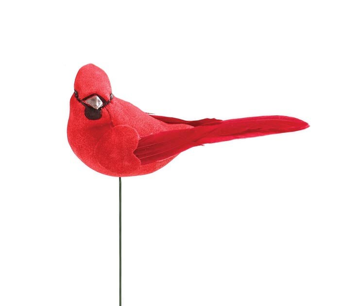 ***Red Cardinal pick on metal stem, foam with feathers