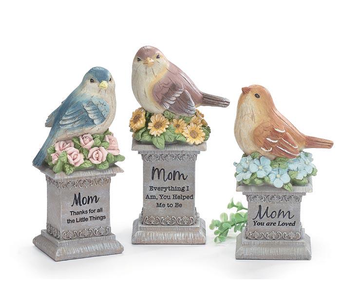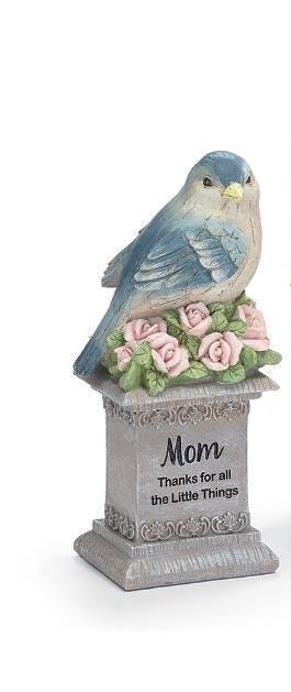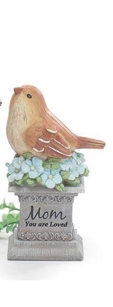 Celebrate the love and comfort of motherhood with this sweet and sentimental Pedestal Birds with “Mom” Message Decor. Perched gracefully atop a classic pedestal base, a charming bird with flowers share a tender message of love for Mom.