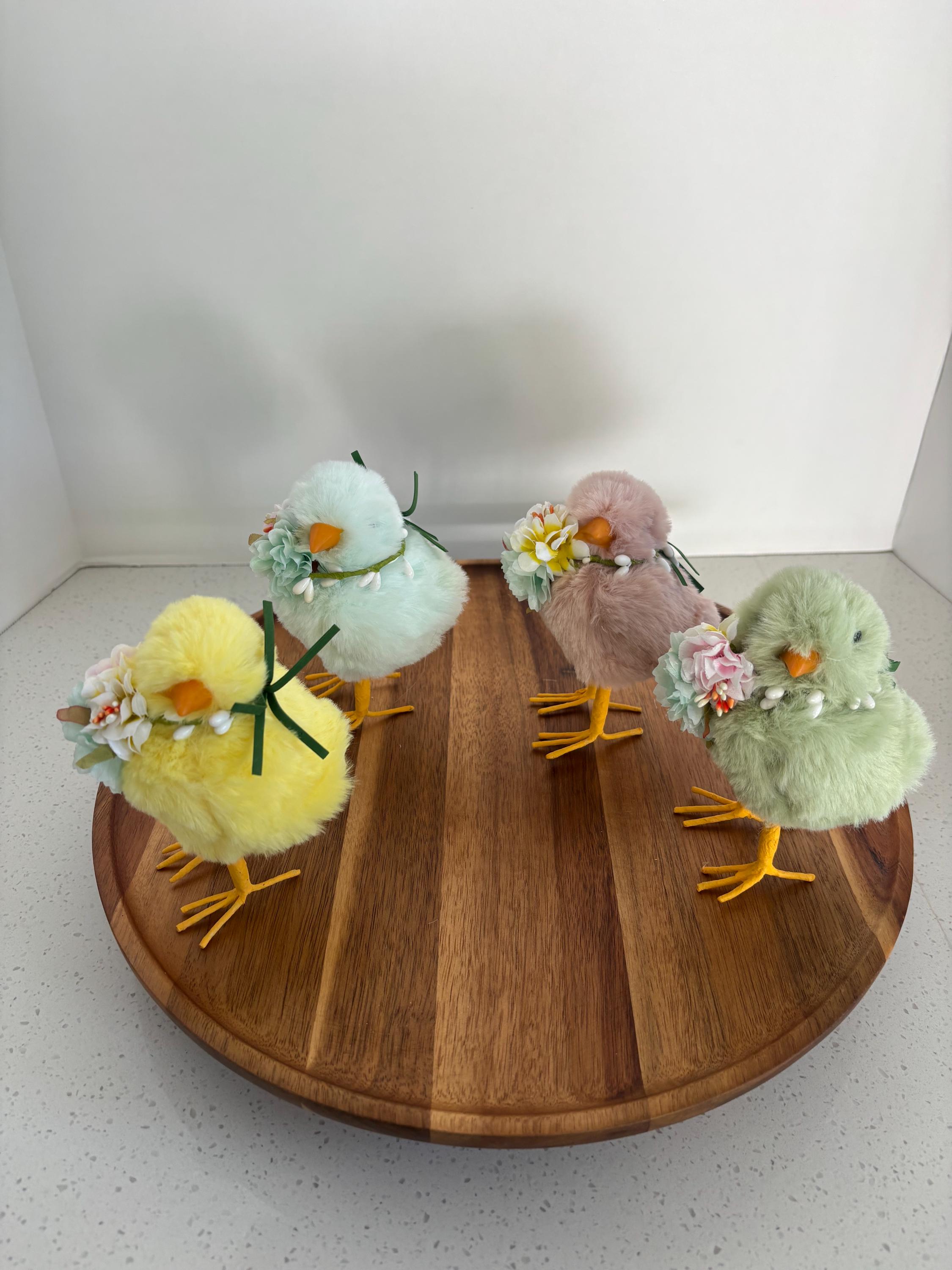 These Fluffy Pastel Baby Chicks are bursting with charm and ready to brighten your day! Dressed in soft shades of spring—like blush pink, buttery yellow, sky blue, and leafy green—each chick is topped off with a tiny flower necklace for an extra dose of cuteness.