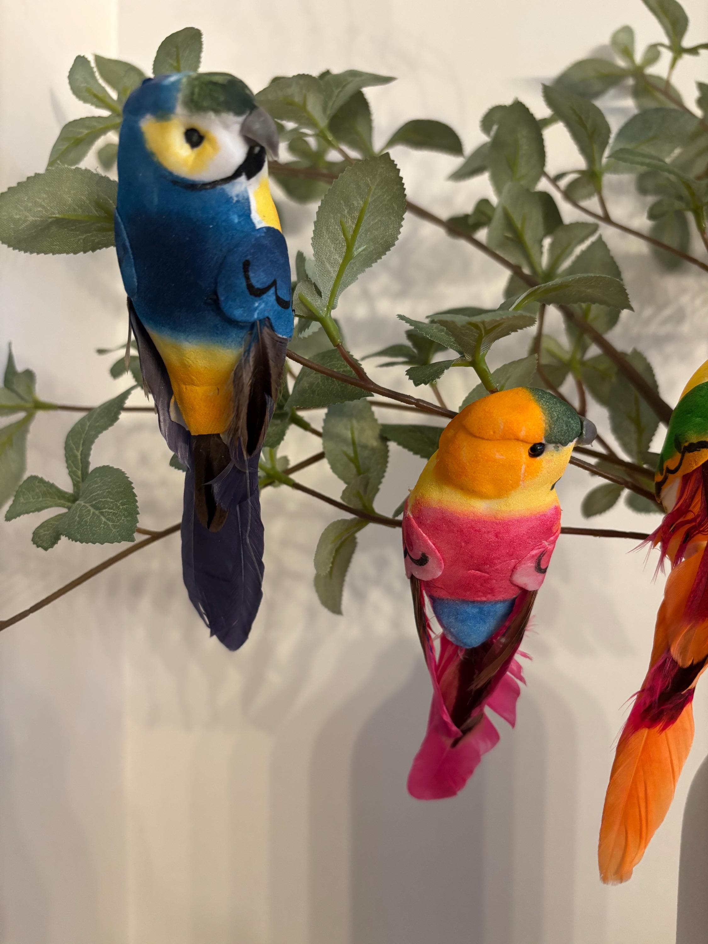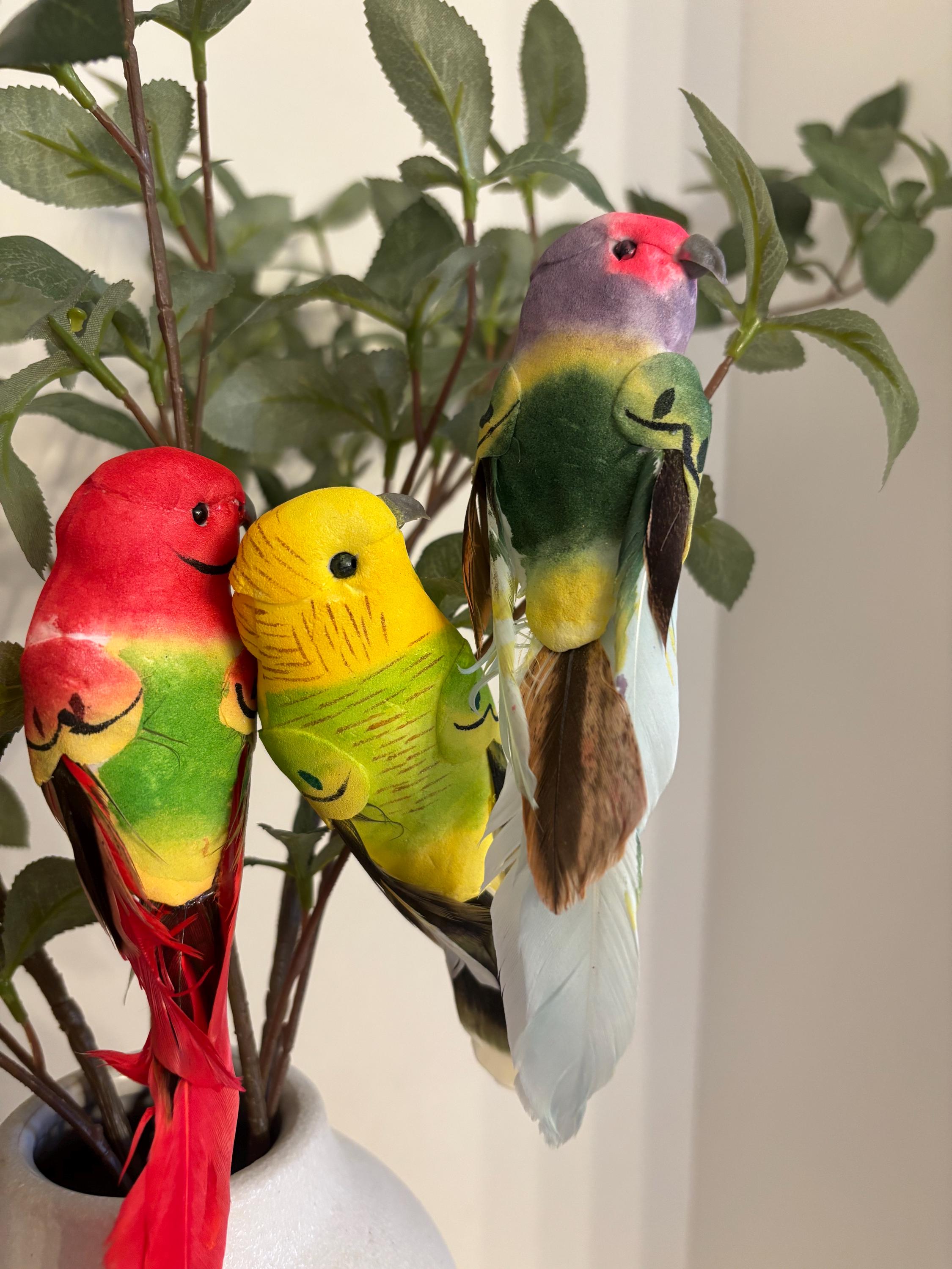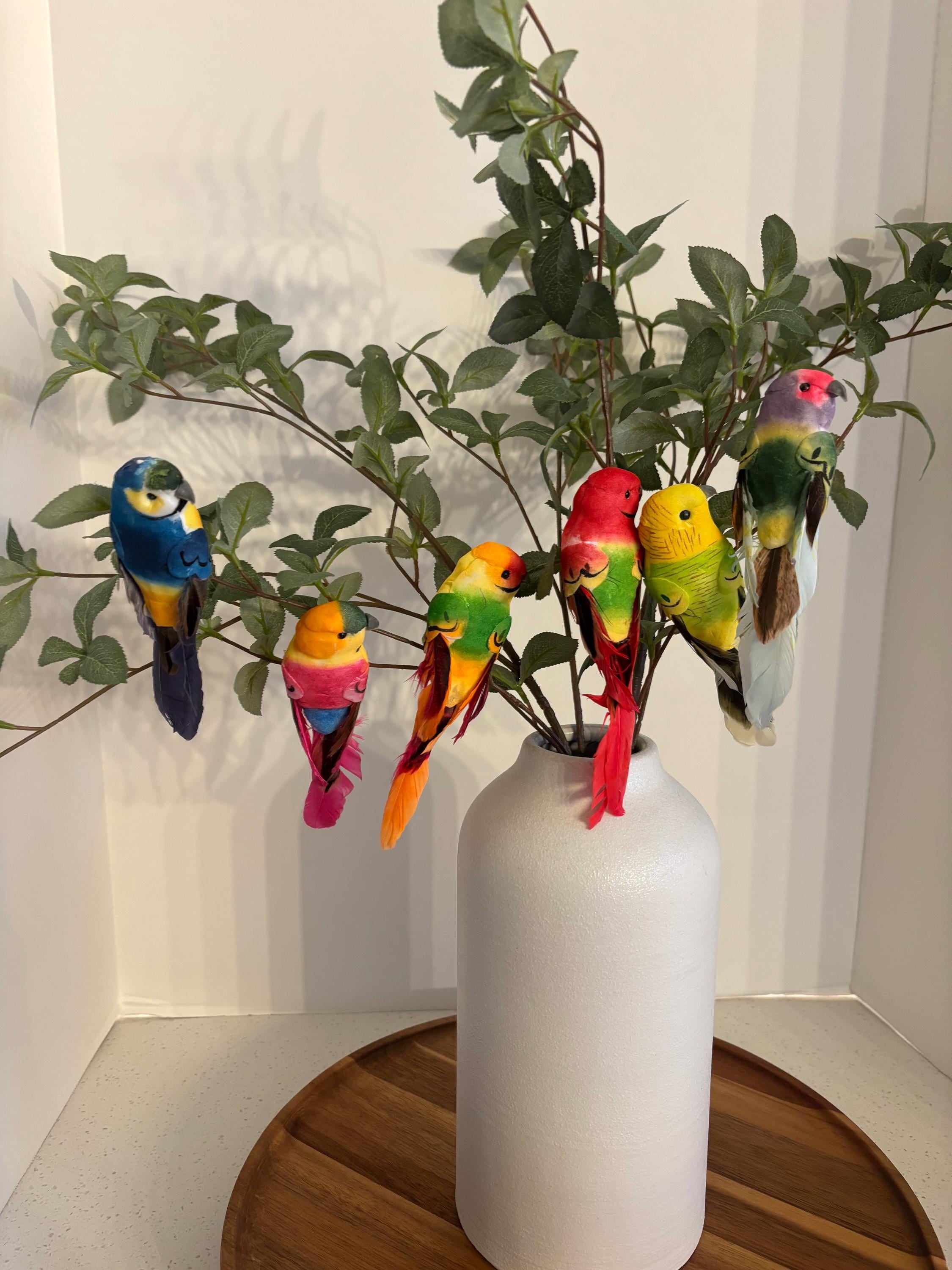 Bring a burst of tropical charm to your decor and DIY projects with this set of 6 tropical bird floral clips! Each clip features a brightly colored bird with soft, realistic feathers and fine detailing, perfect for adding a fun, exotic flair to wreaths, floral arrangements, gift wrapping, party decor, or seasonal displays.