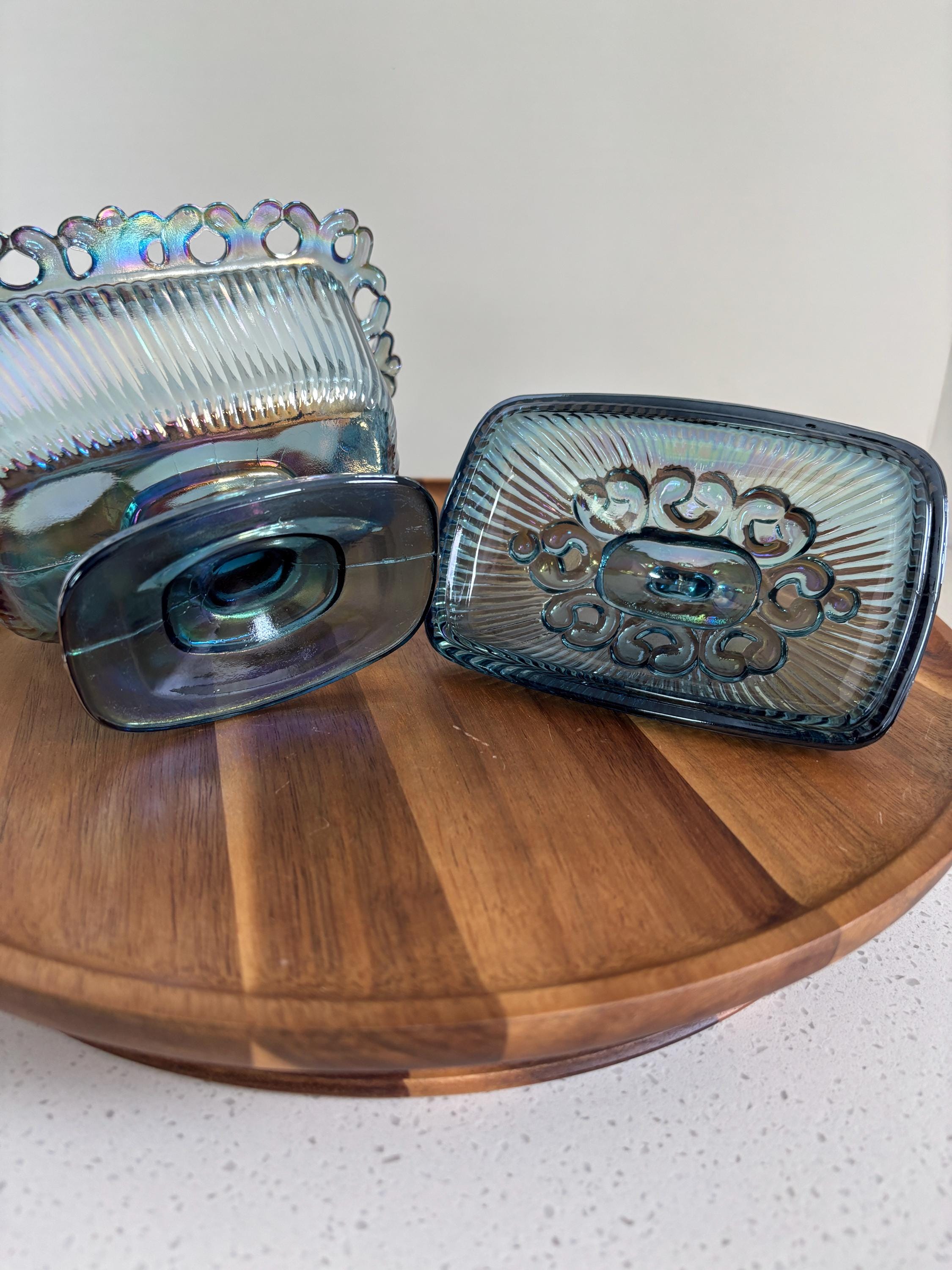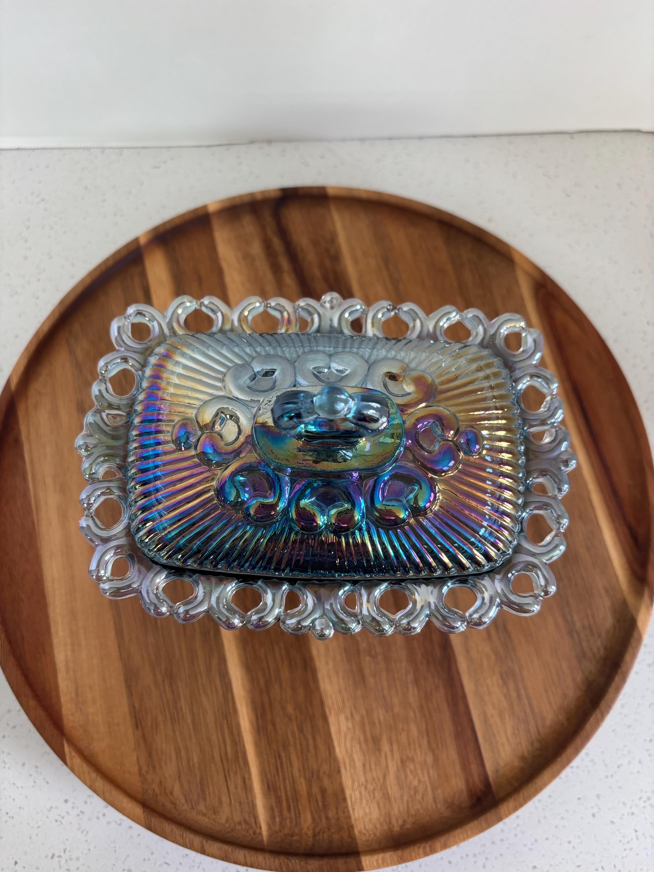 ***Blue carnival iridescent glass