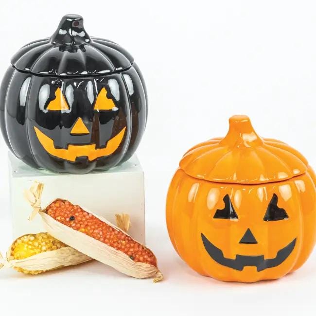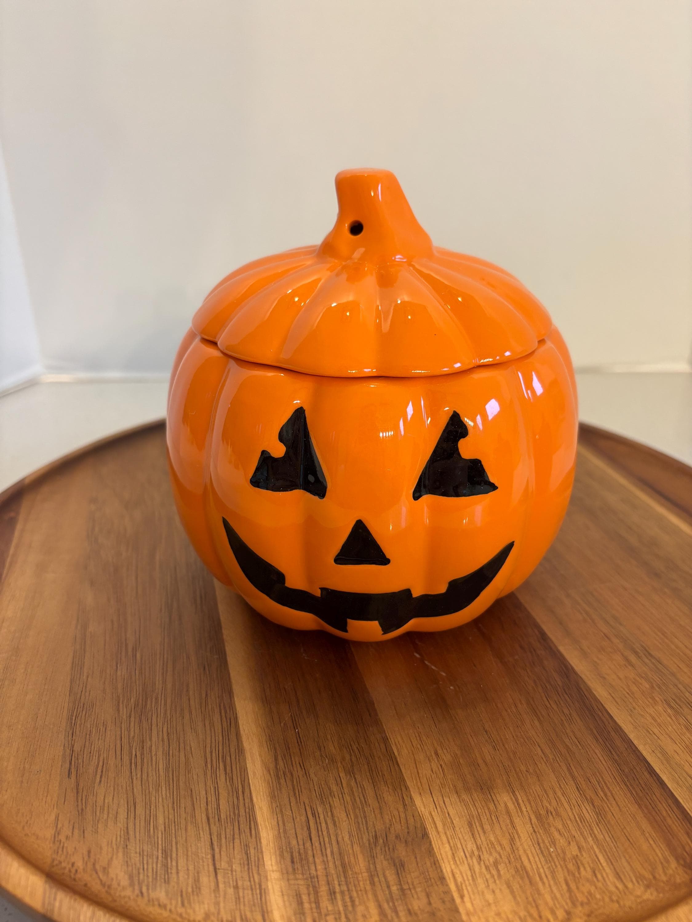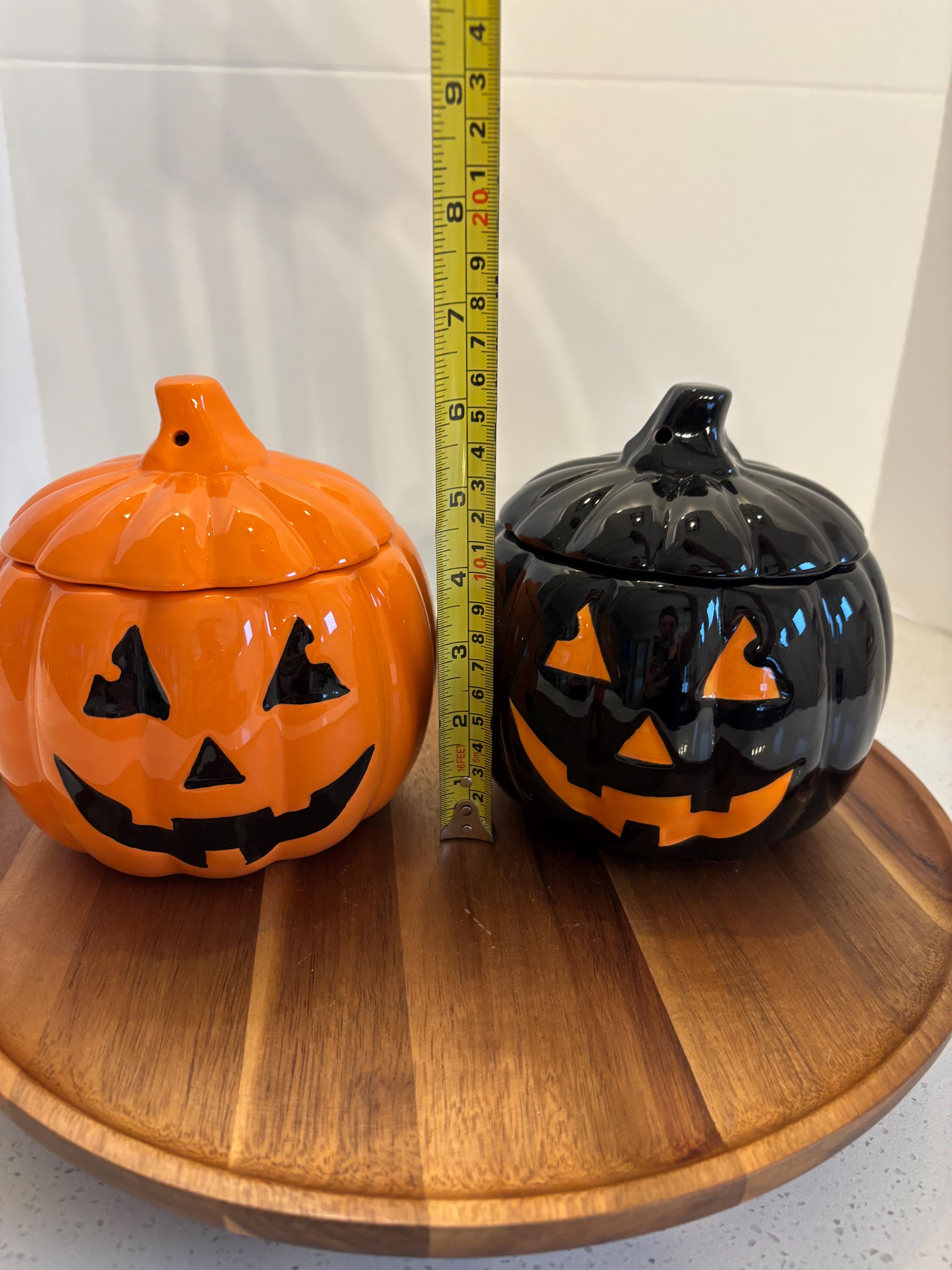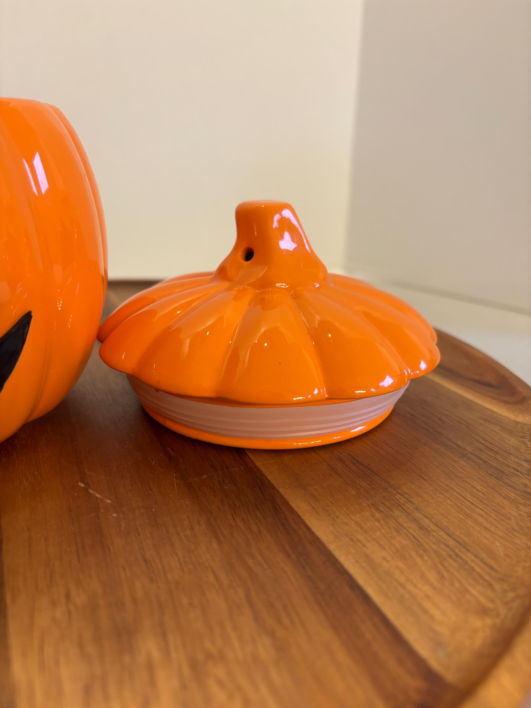 Celebrate the season in delicious style with our Ceramic Halloween Pumpkin Cookie Jar in bold orange and black! This festive jar is the perfect blend of spooky and charming — shaped like a classic grinning jack-o’-lantern and finished in glossy ceramic for a timeless Halloween look.