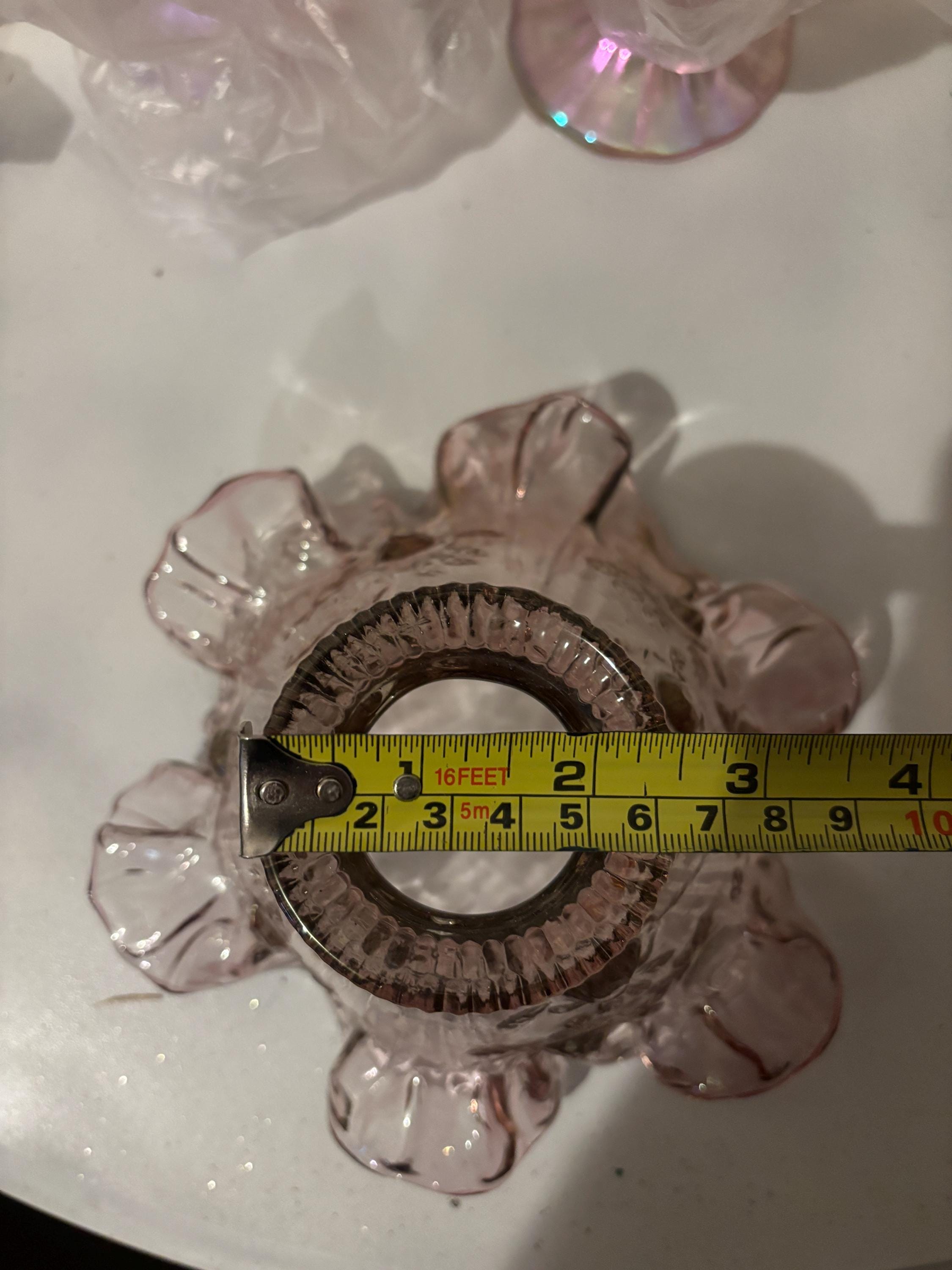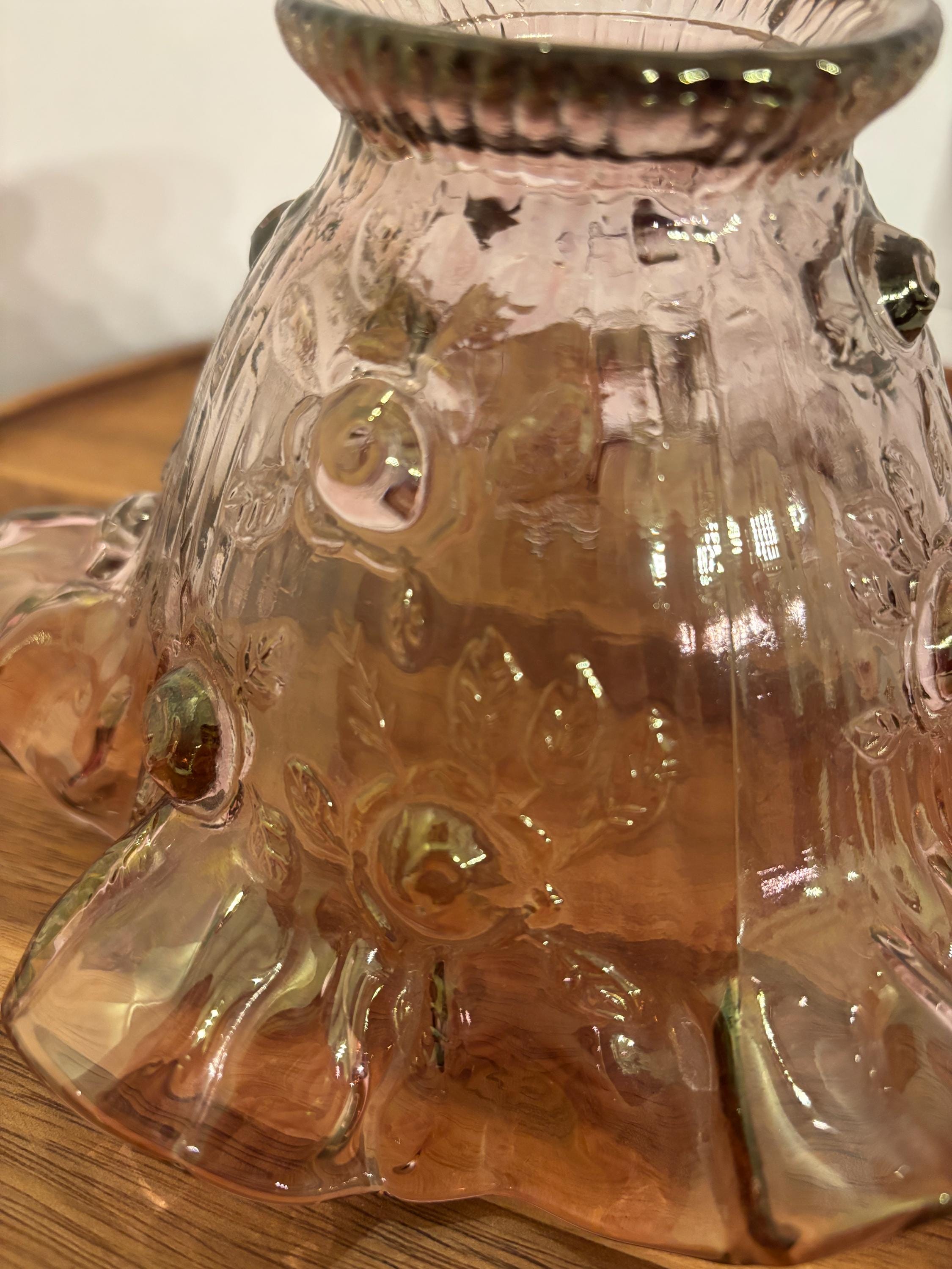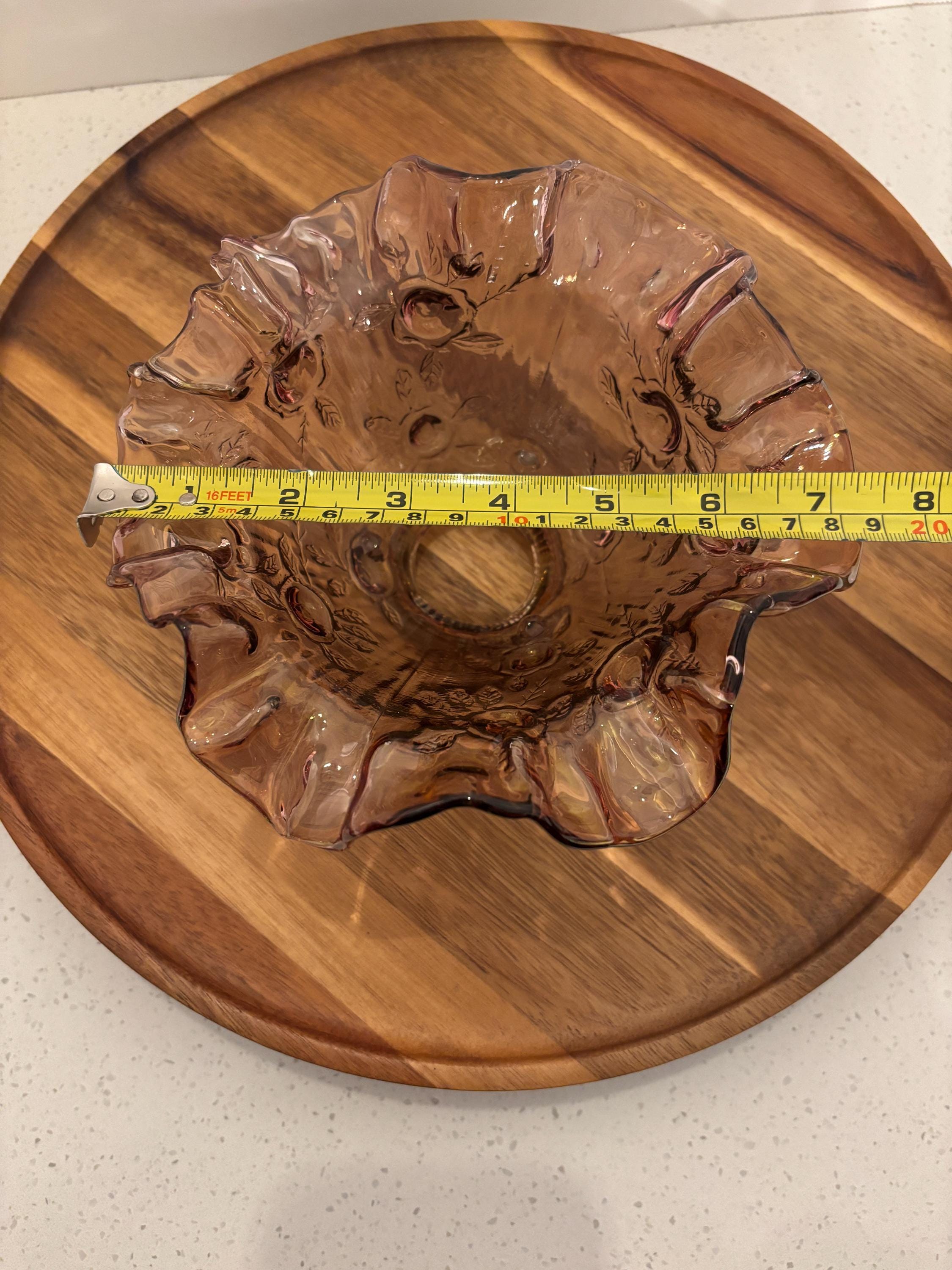 ***Dusty Rose Pink floral glass lamp shade with ruffled or fluted rim at the bottom and a ribbed opening at the top