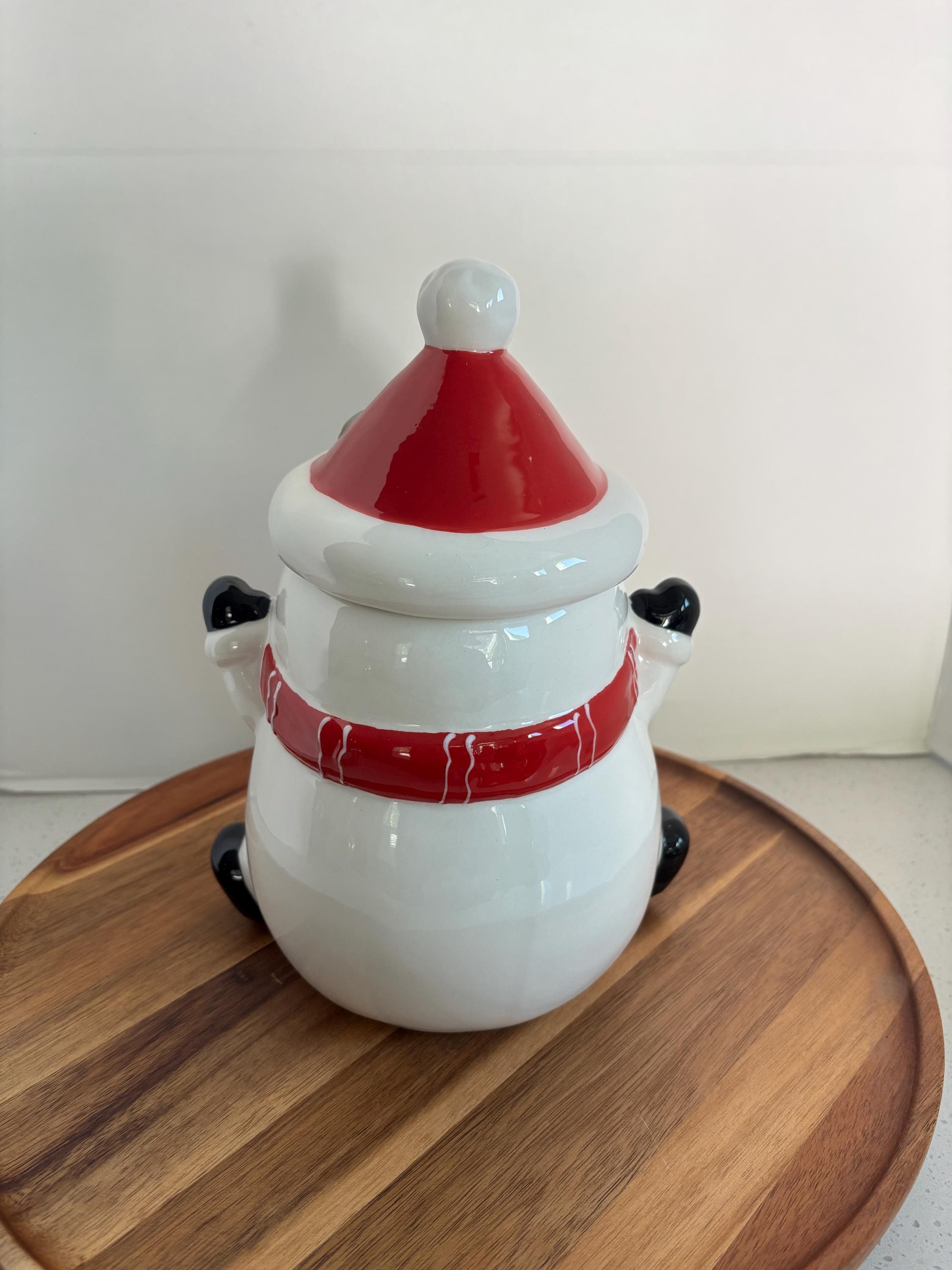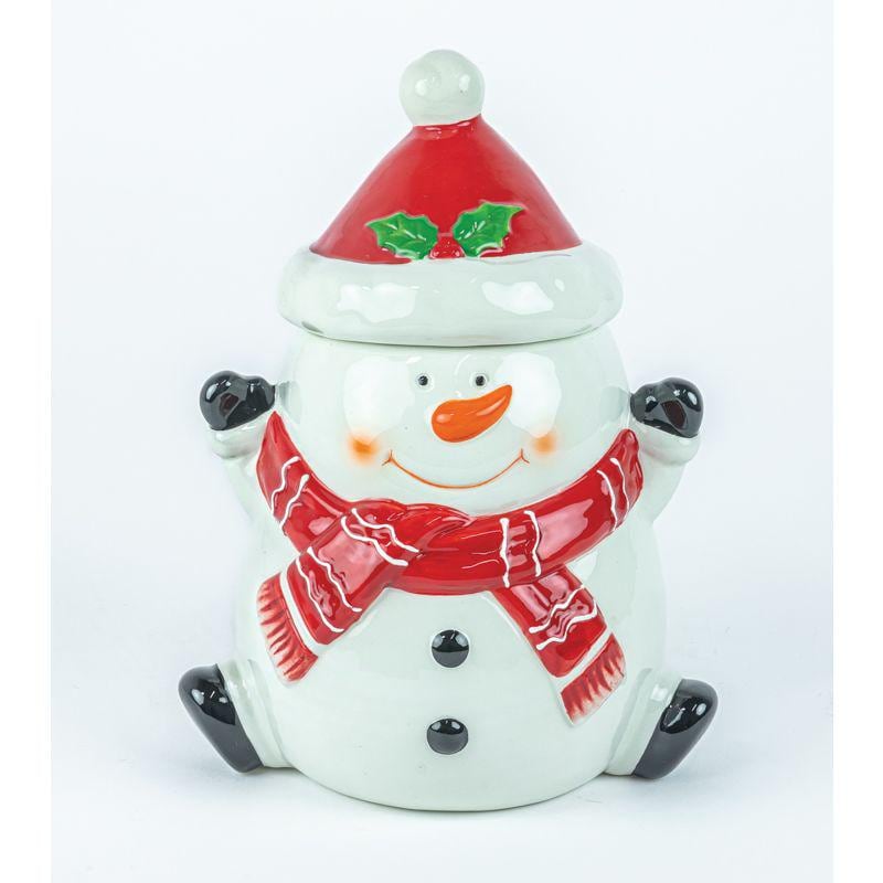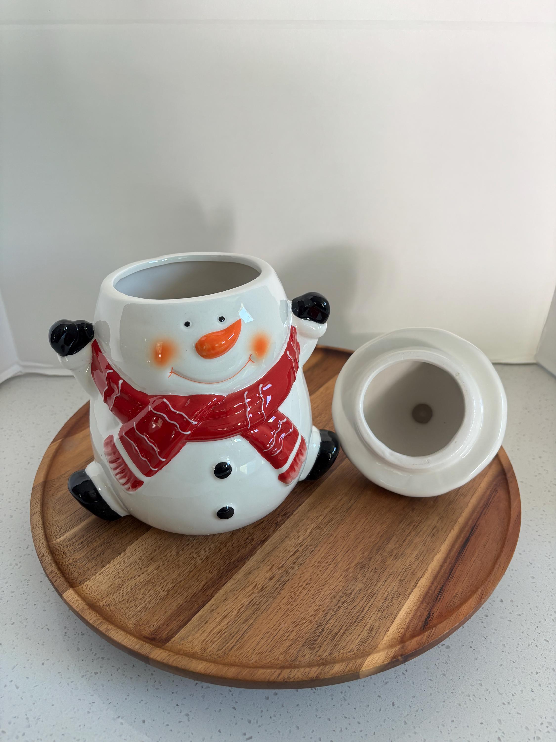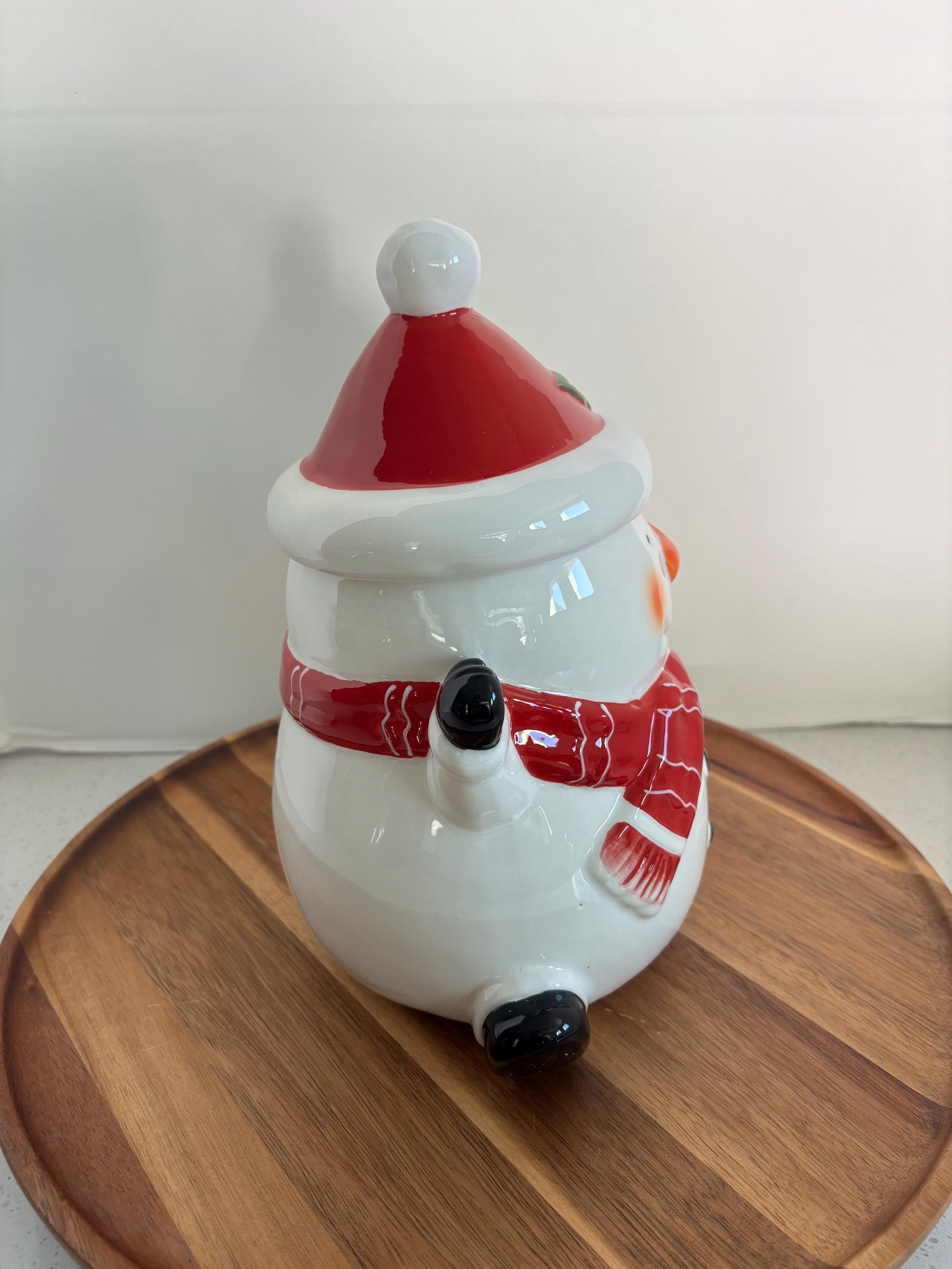 Whether placed on your countertop, dining table, or given as a thoughtful gift, the Happy Snowman Cookie Jar is sure to spread holiday cheer to everyone who sees it.