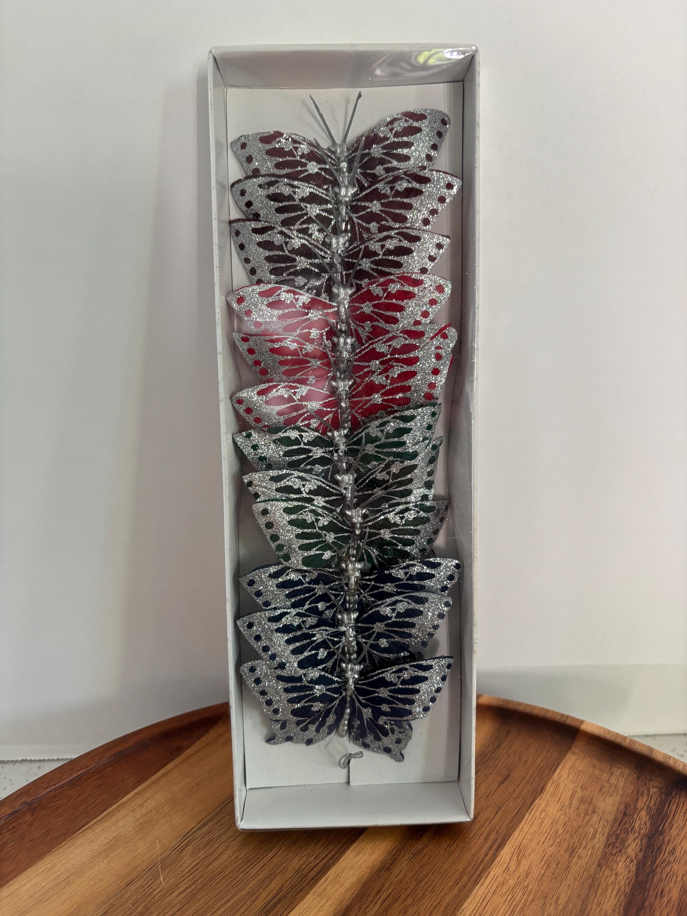 ***Set of 12 glitter butterfly floral picks