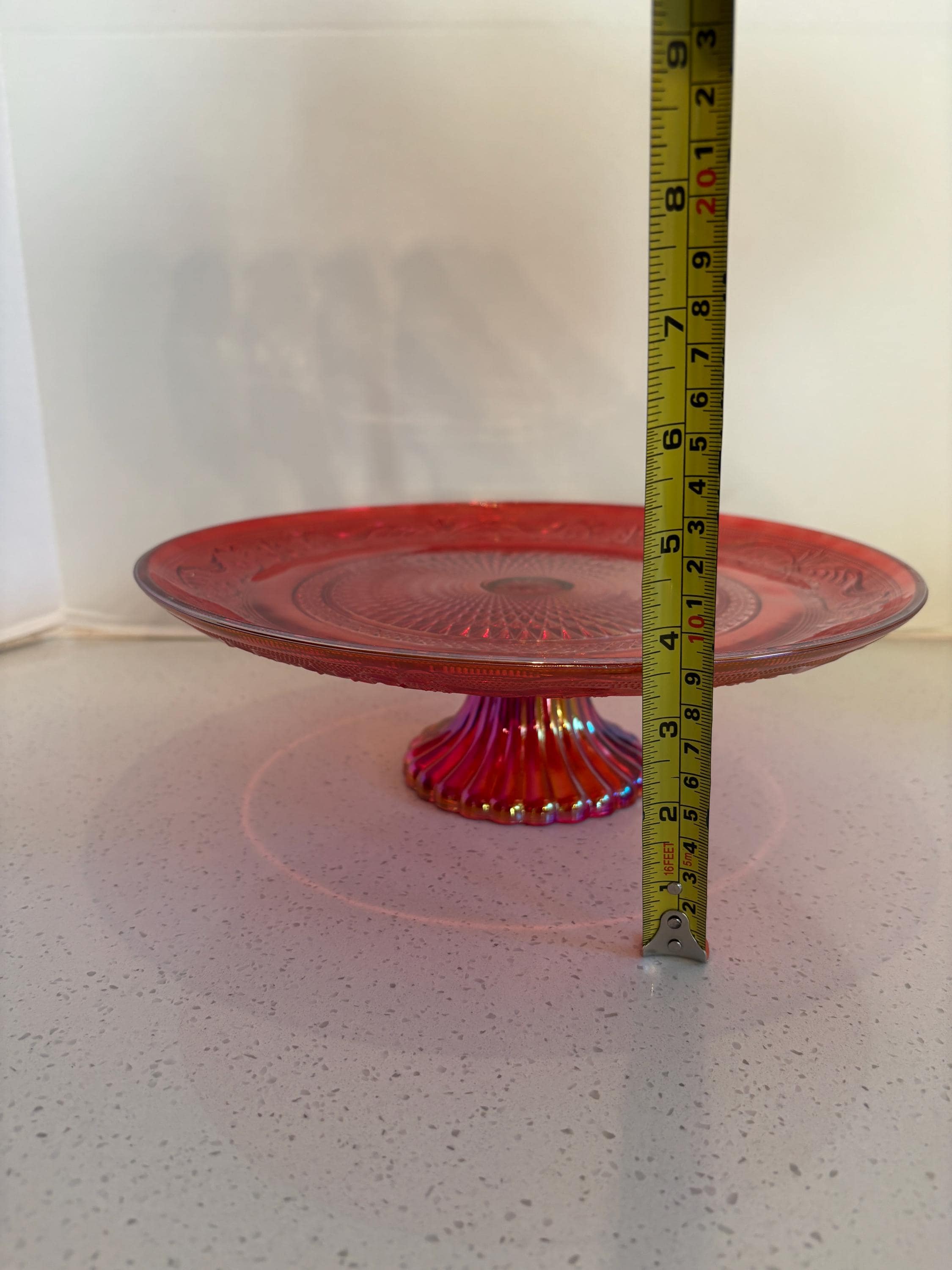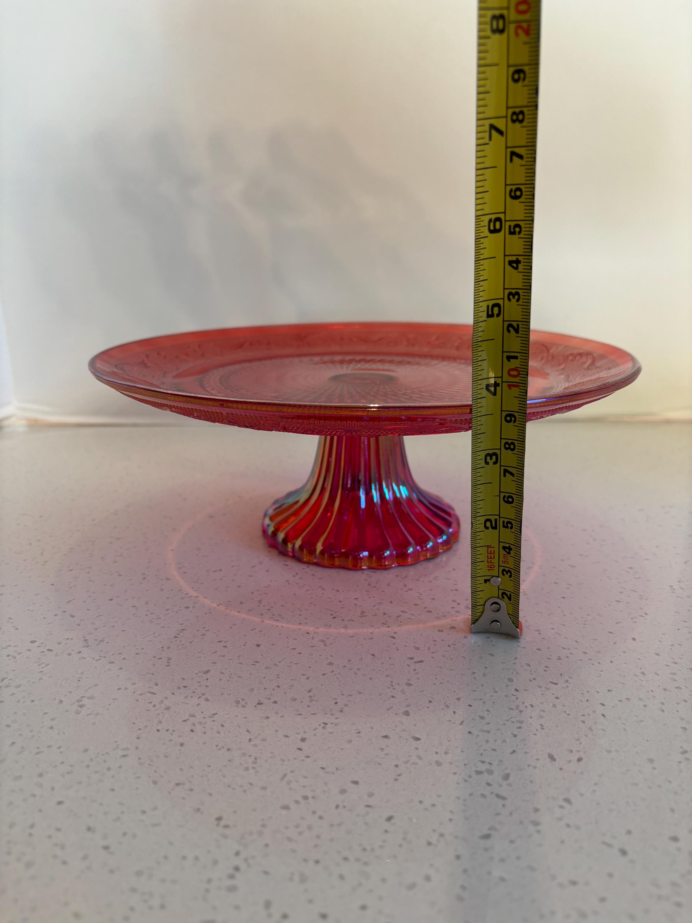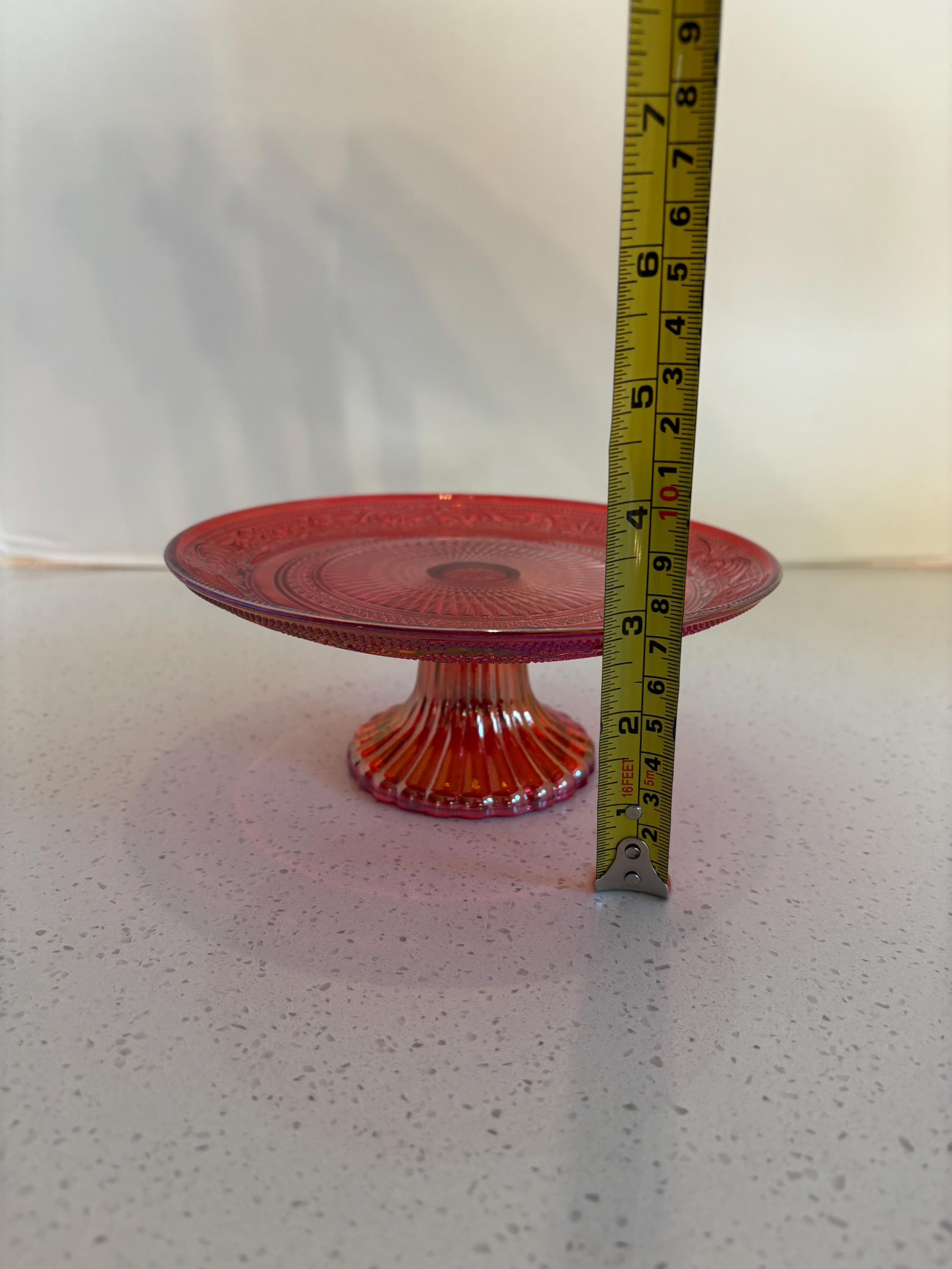 Make a bold and beautiful statement with our Glass Red Iridescent Cake Plate Stand, available in three sizes: Small, Medium, or Large. Featuring a vibrant red hue with a shimmering iridescent finish, this stand adds a touch of luxury and drama to any dessert display.