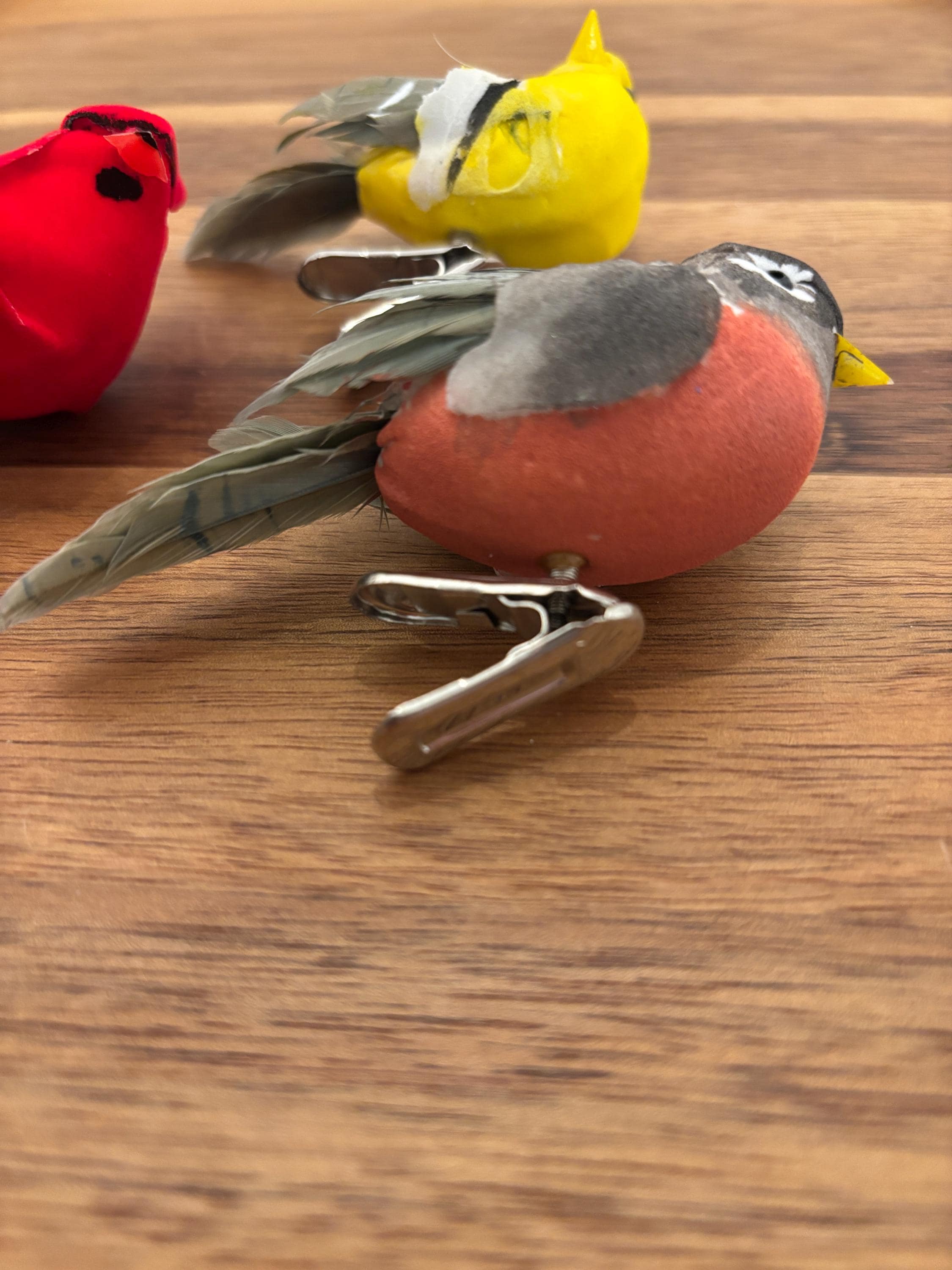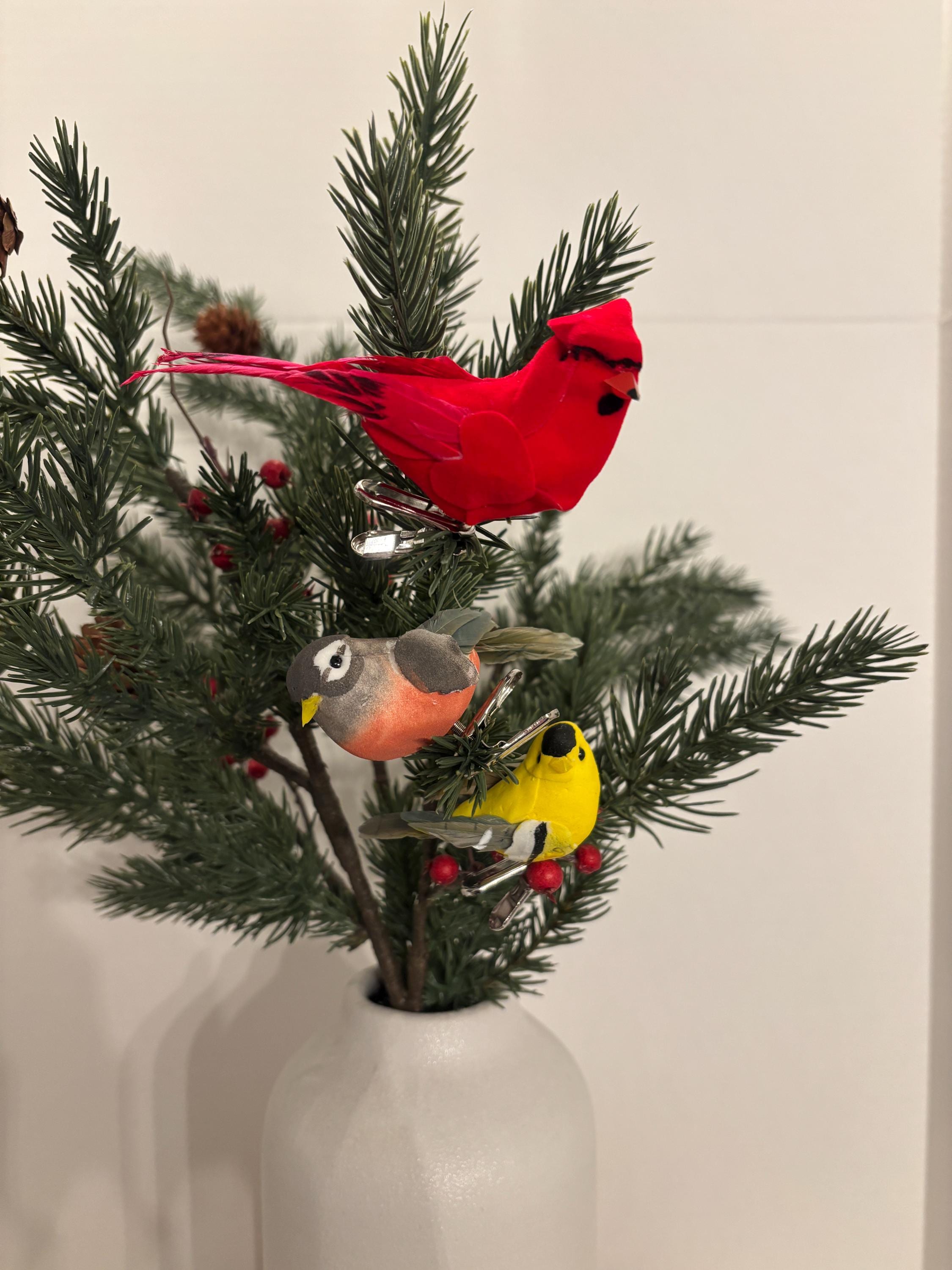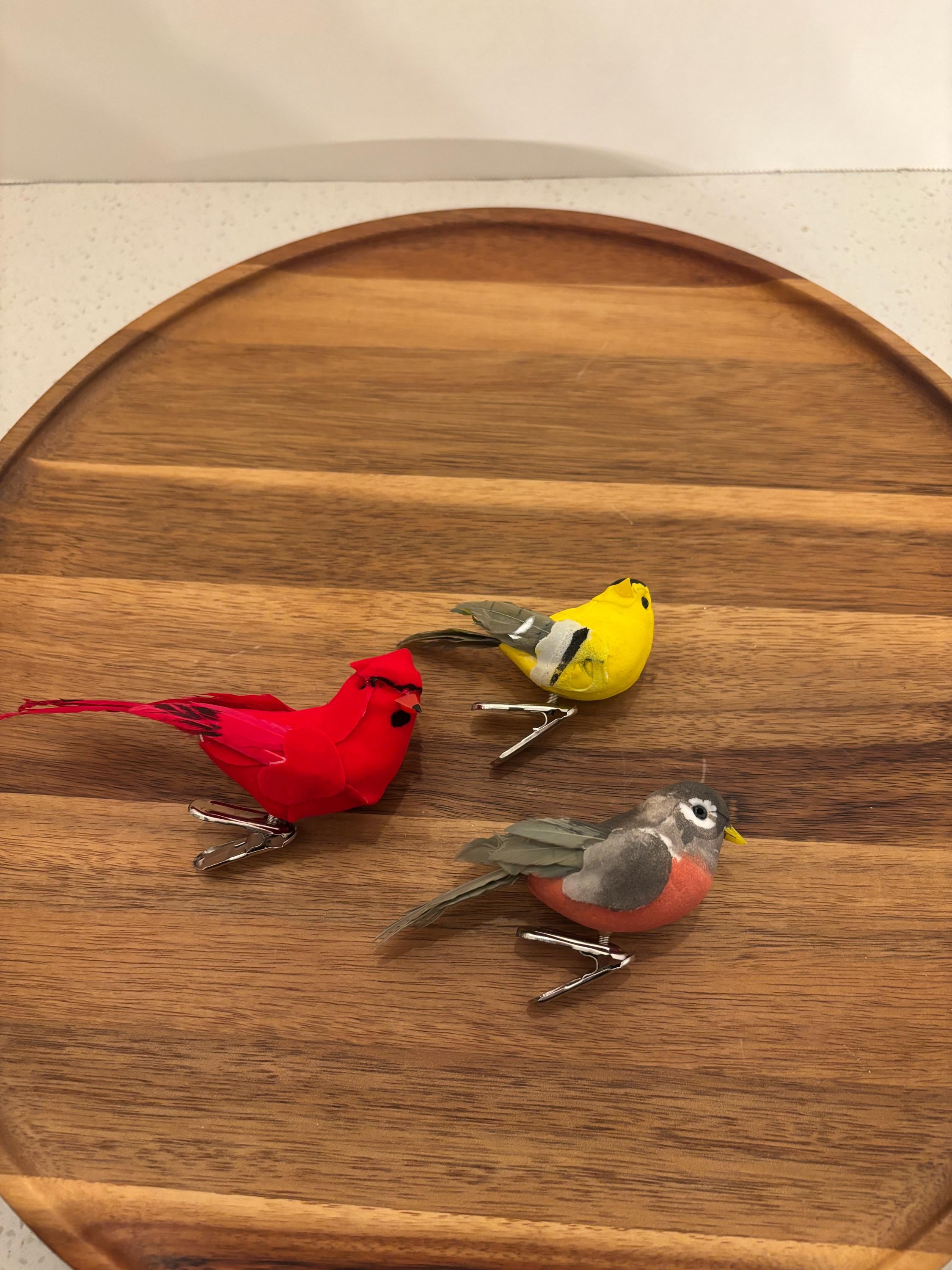 Each clip is securely attached to a sturdy alligator-style clip, making them easy to place and reposition wherever a little feathered flair is needed. Whether you're decorating for spring, Christmas, or simply love bird-themed touches year-round, this trio brings personality and charm to any setting.