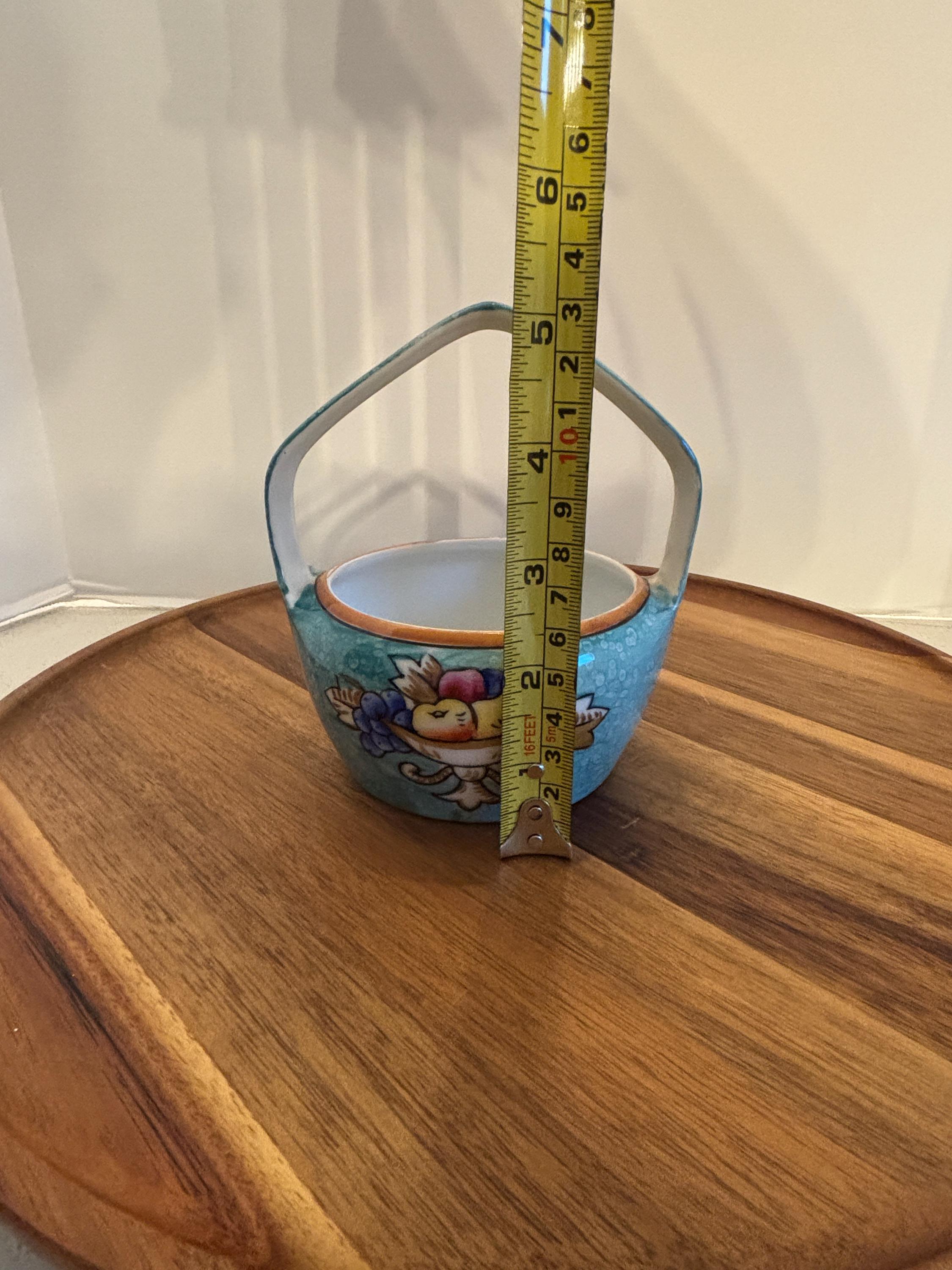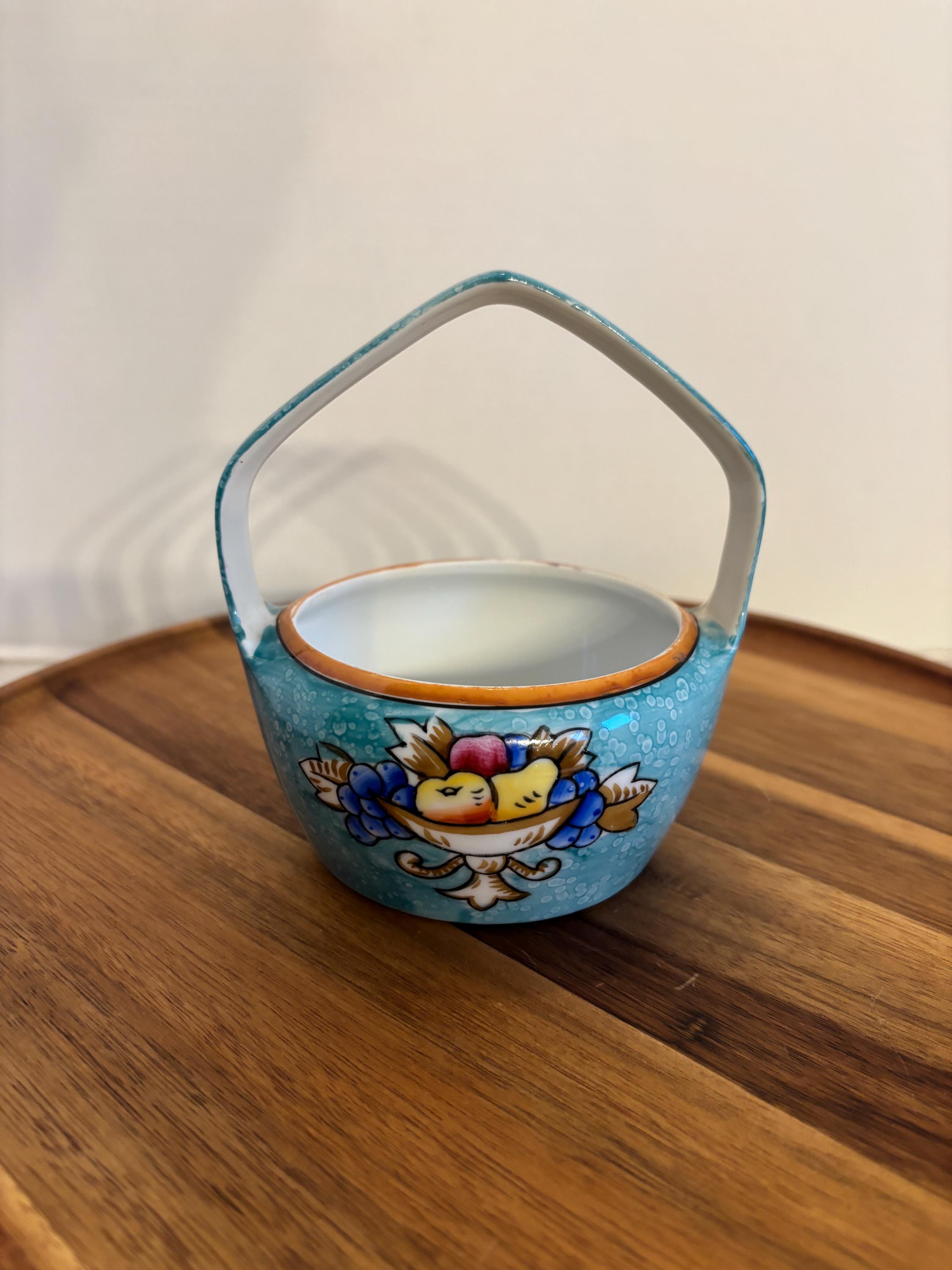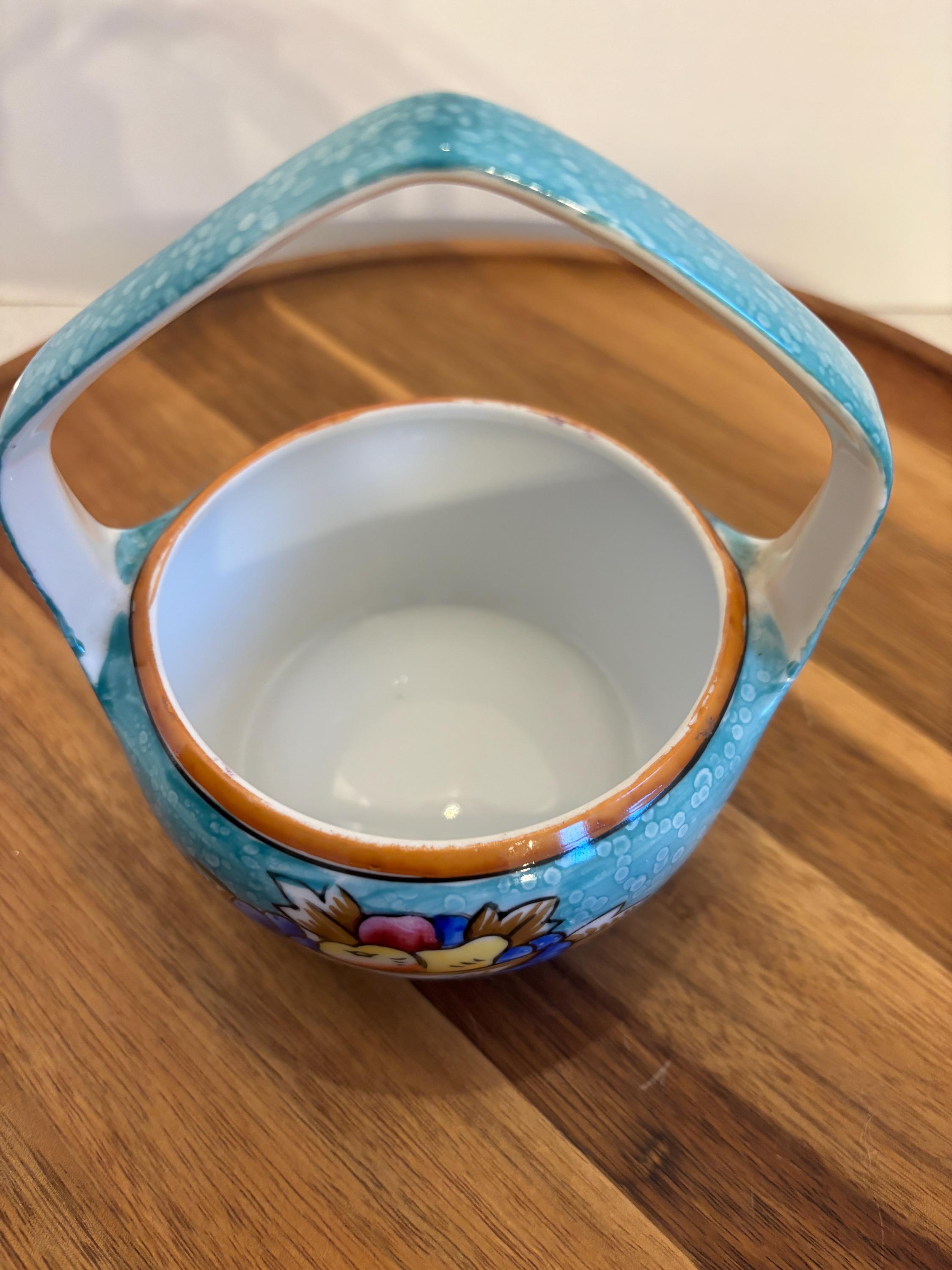 Whether displayed on a shelf, used as a charming trinket dish, or gifted to a collector, this porcelain basket brings a pop of color and classic artistry to any space. A lovely example of mid-century Japanese porcelain, this Noritake basket is perfect for those who appreciate craftsmanship, color, and vintage charm.