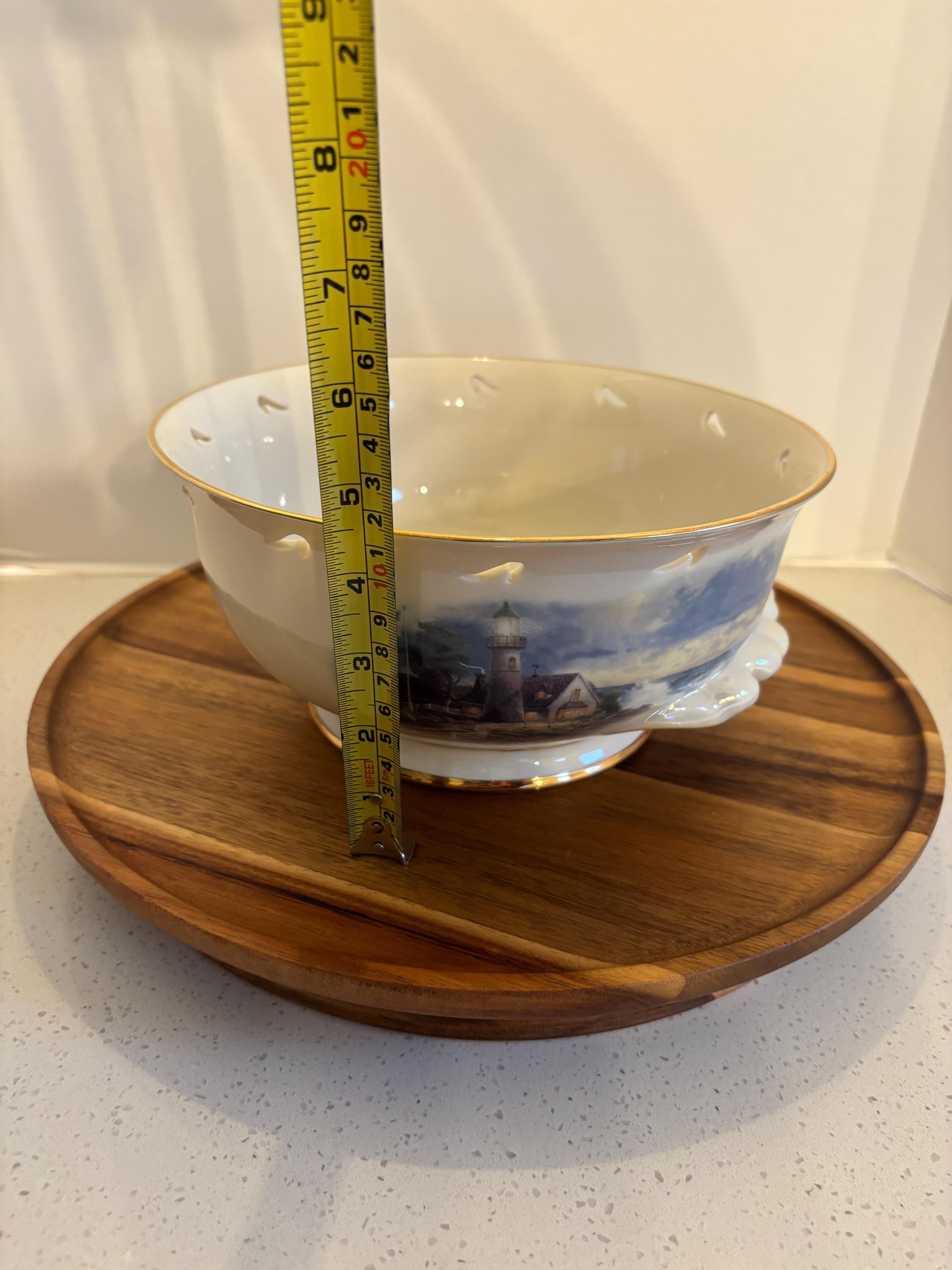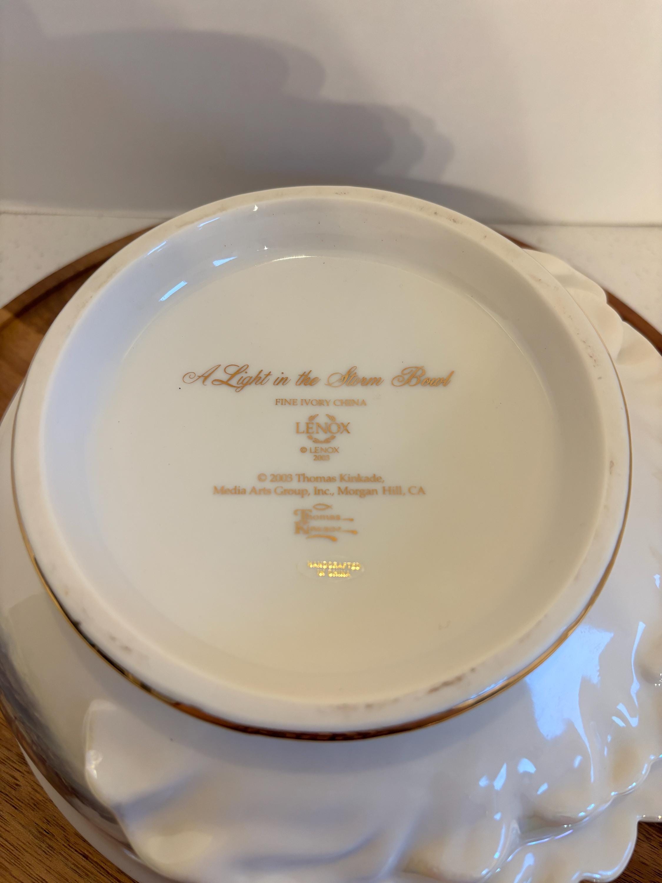 Bring artistry and inspiration to your table with the Lenox Thomas Kinkade "A Light in the Storm" Ceramic Bowl — a stunning blend of fine craftsmanship and the heartwarming imagery of the Painter of Light™. Featuring one of Kinkade’s most beloved lighthouse scenes, this collectible bowl captures a beacon of hope and serenity amidst turbulent seas.