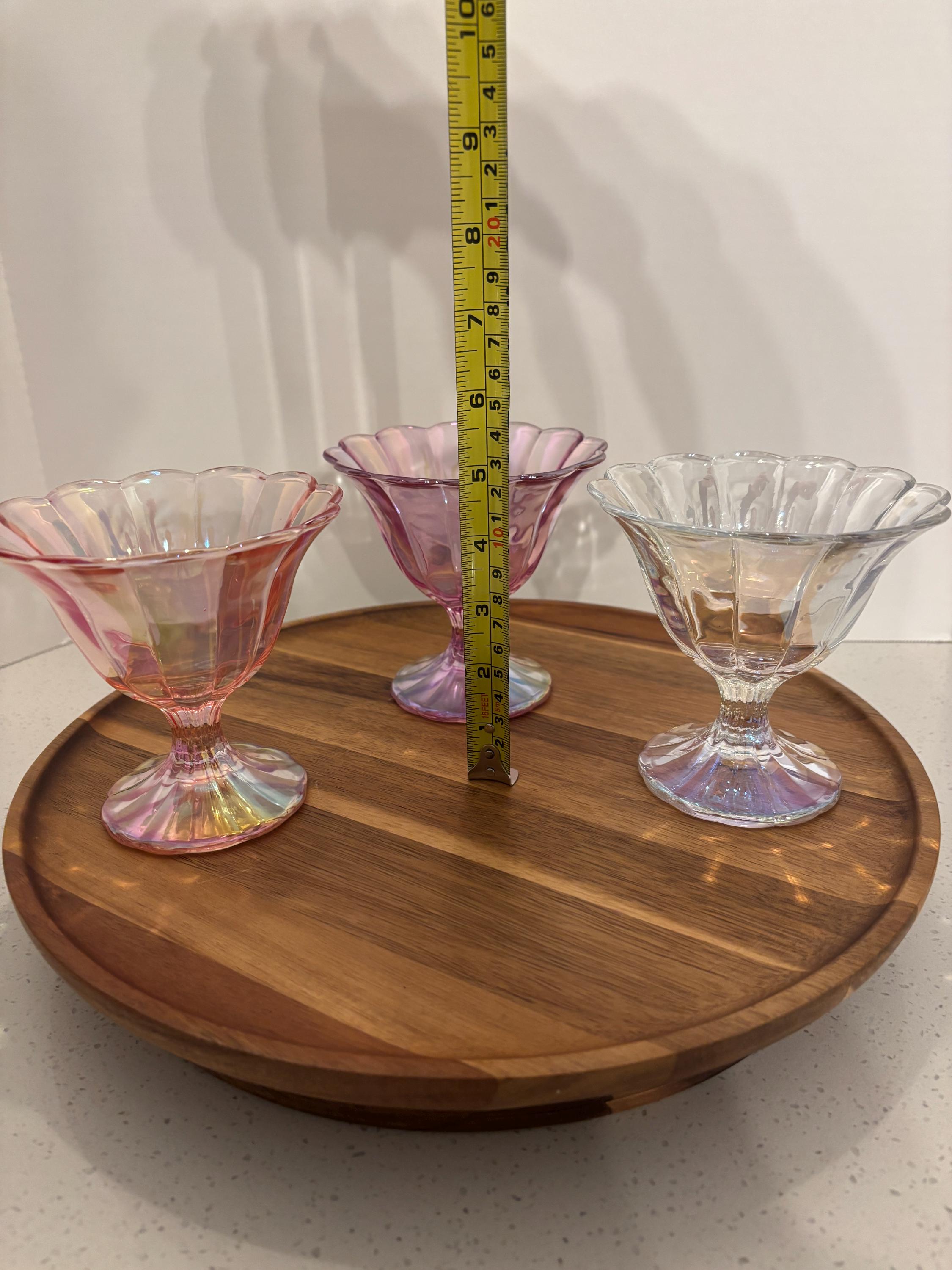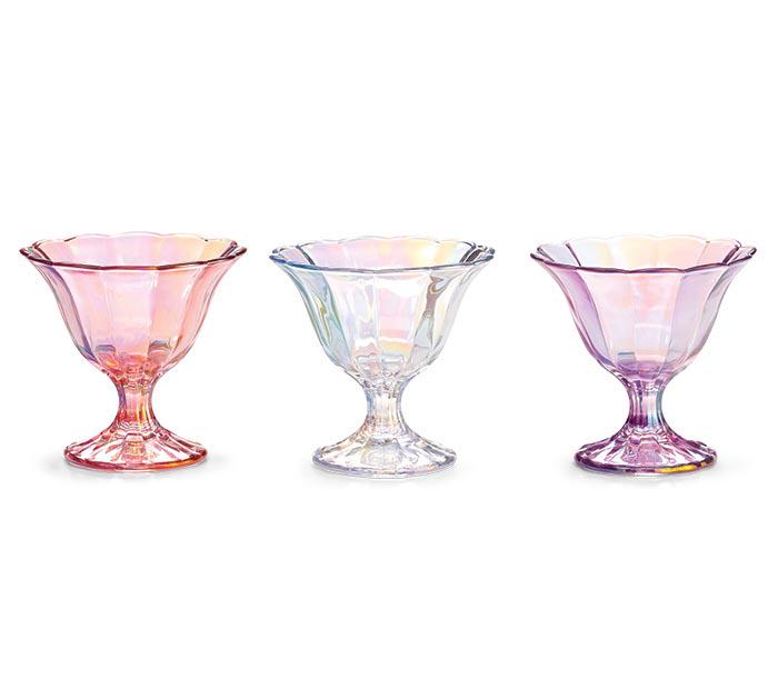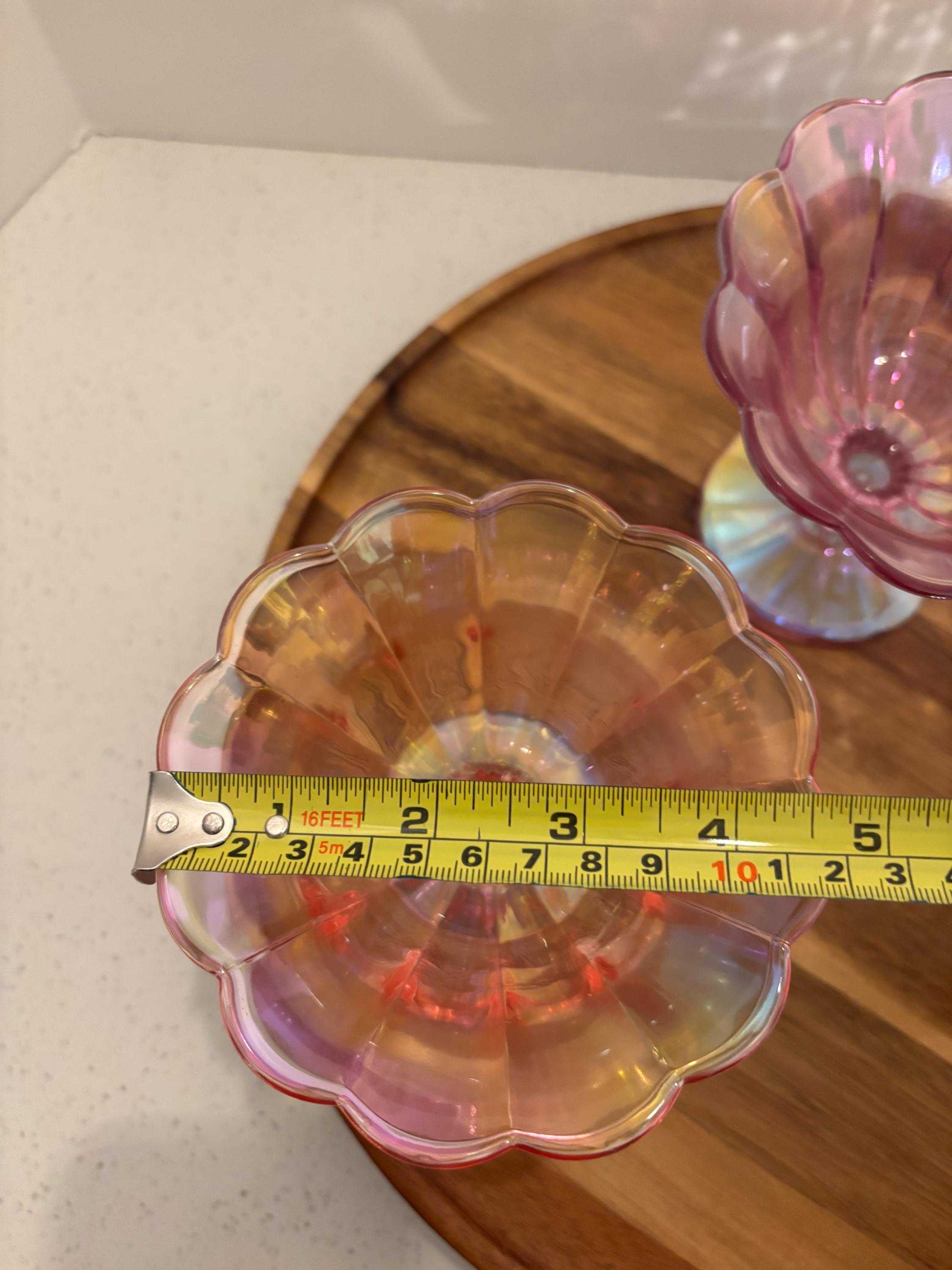 Serve style with every scoop. Our Iridescent Sherbet-Style Glass Bowl Dish brings a touch of vintage charm and modern shimmer to your table. With its scalloped edges, pedestal base, and radiant iridescent finish, this glass bowl is perfect for desserts, snacks, or elegant décor accents.