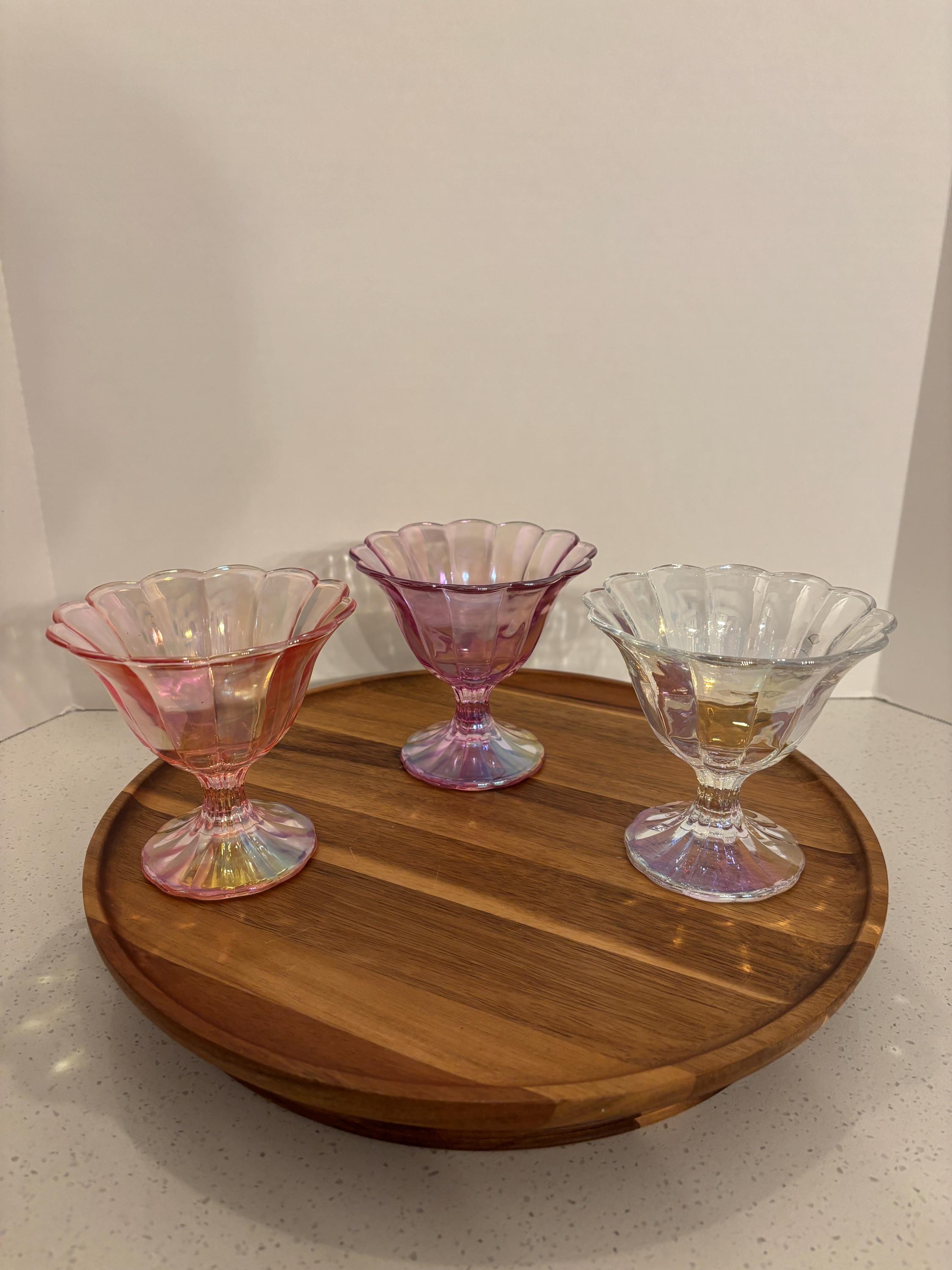 Whether you choose the soft Pink, dreamy Purple, or timeless Clear, each bowl catches the light beautifully, creating a rainbow-like glow that adds instant appeal to any setting. Ideal for dinner parties, bridal showers, or a luxe everyday treat.