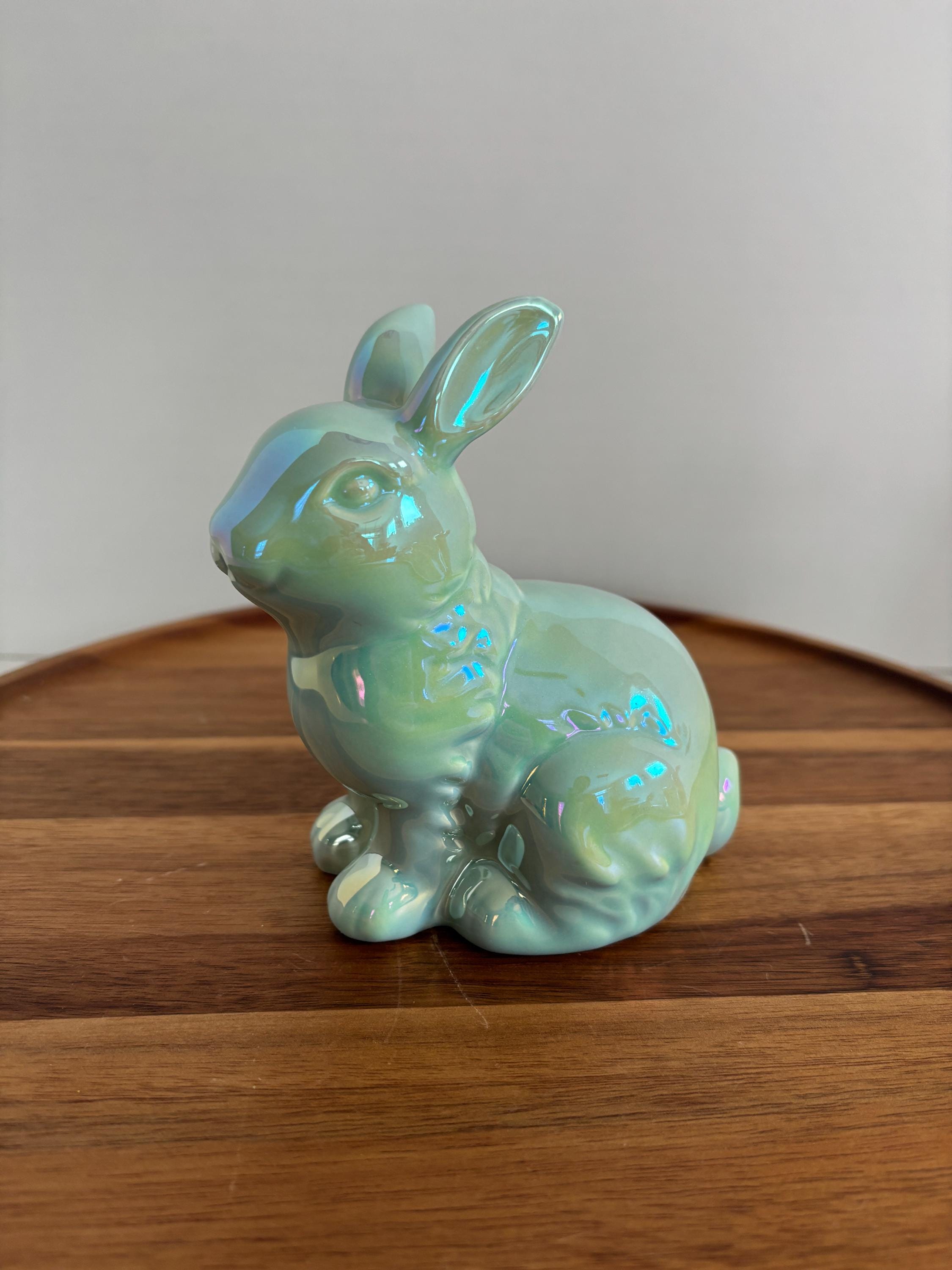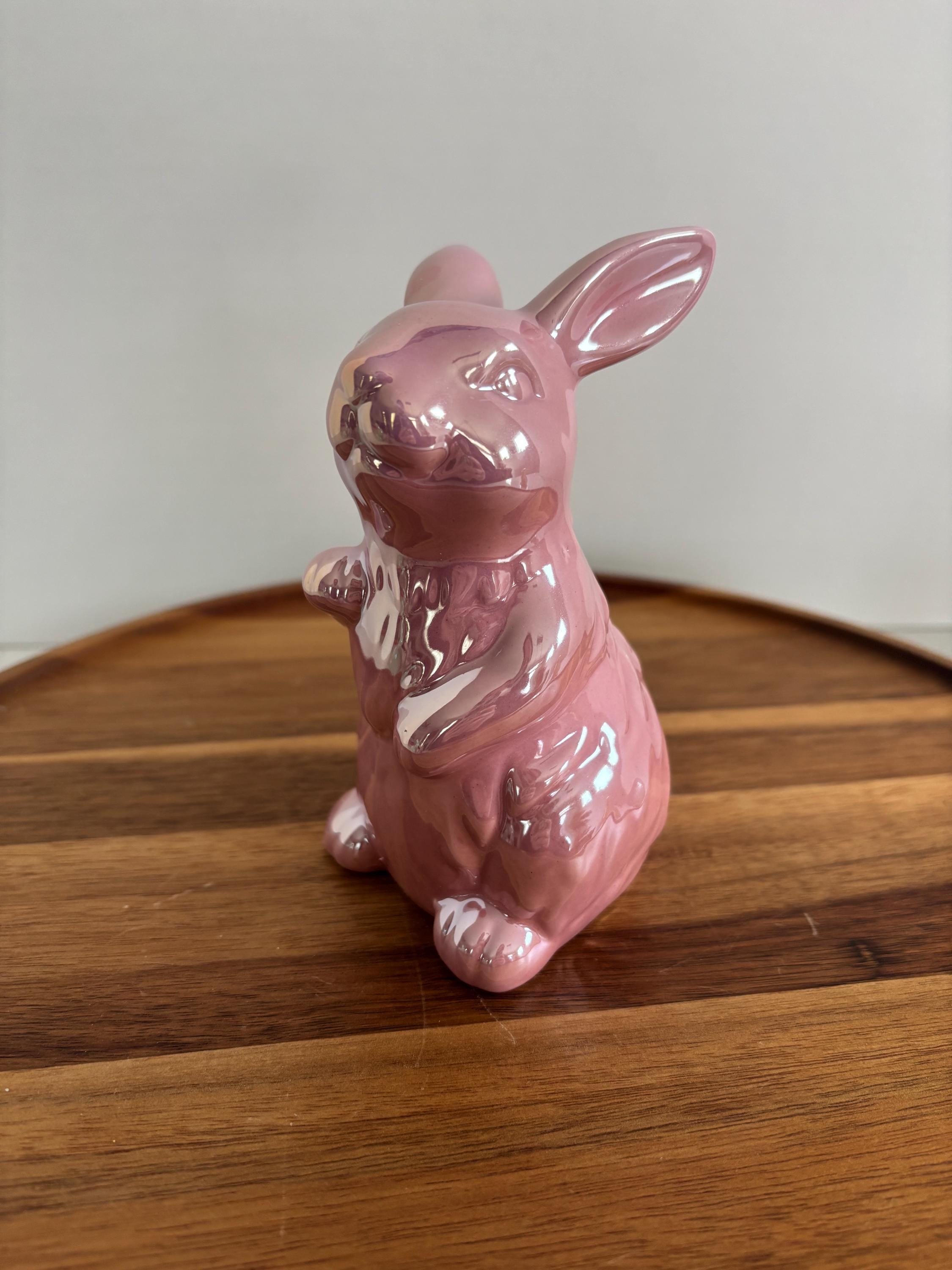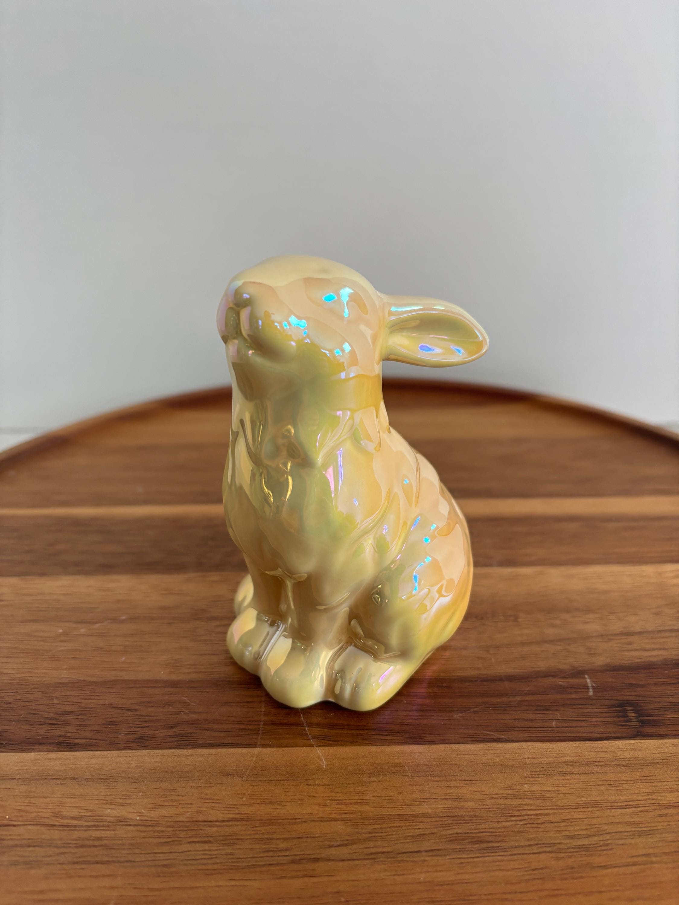 Add a touch of springtime sparkle to your décor with this assortment of four iridescent bunny figurines. Each ceramic bunny features a soft, shimmering finish that catches the light beautifully, creating a magical, eye-catching display.