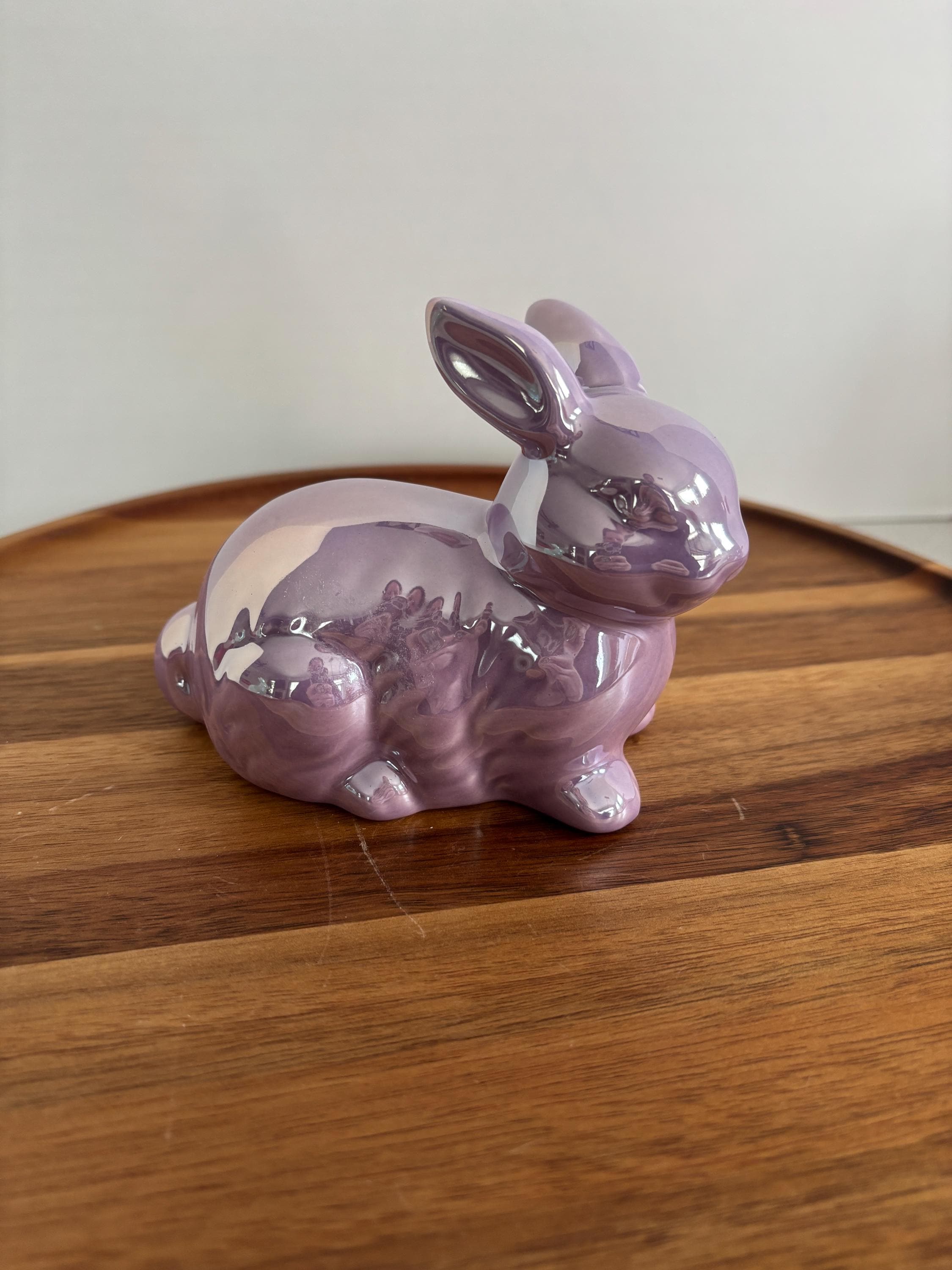 This set includes four pastel colors: lavender, yellow, mint, and pink—perfect for Easter, spring décor, or whimsical tabletop arrangements. The smooth ceramic construction ensures durability, while the iridescent glaze adds a delicate, playful shimmer to each piece.