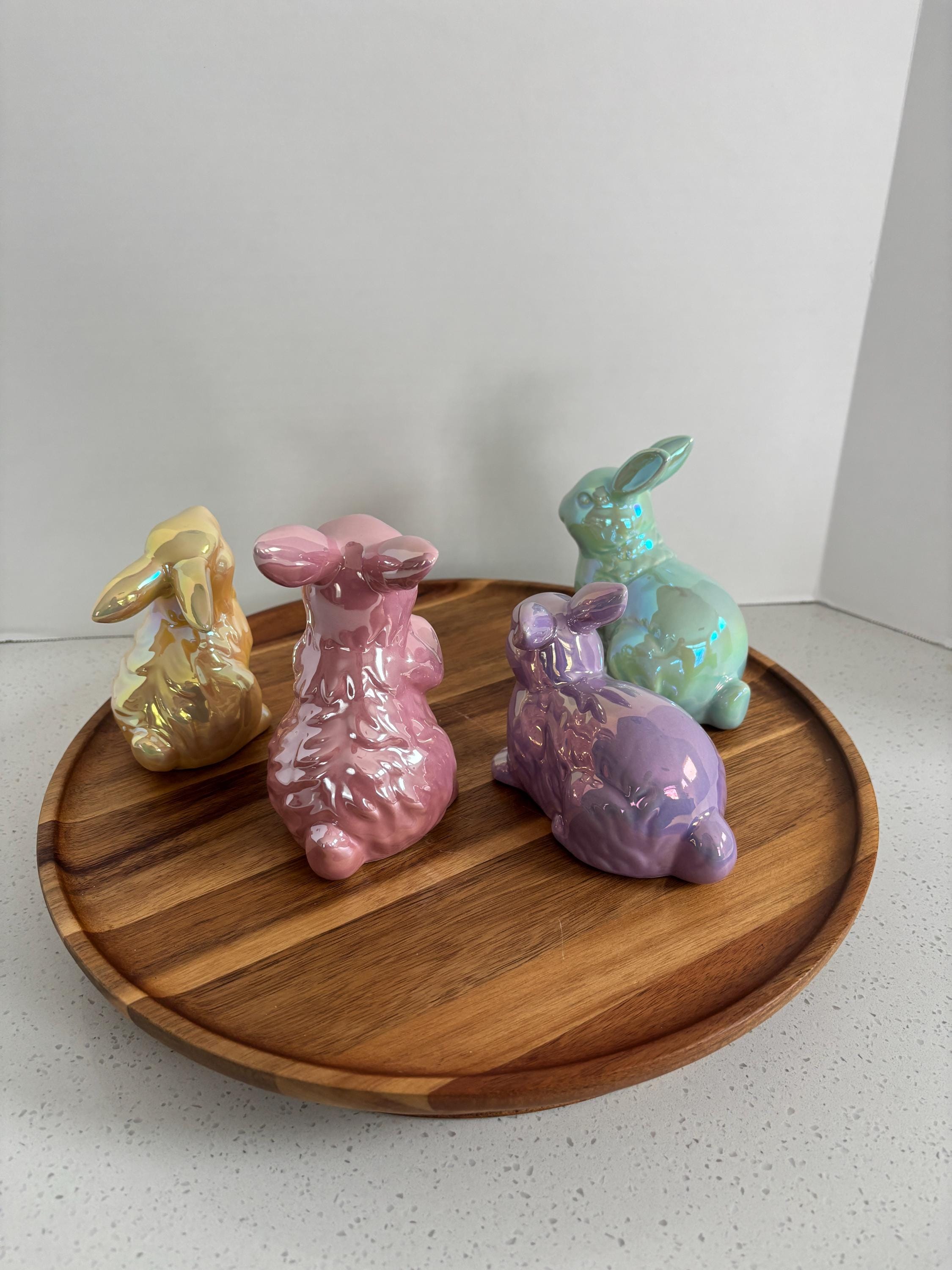 ***Set of 4 ceramic bunnies in lavender purple, yellow, mint green, and pink