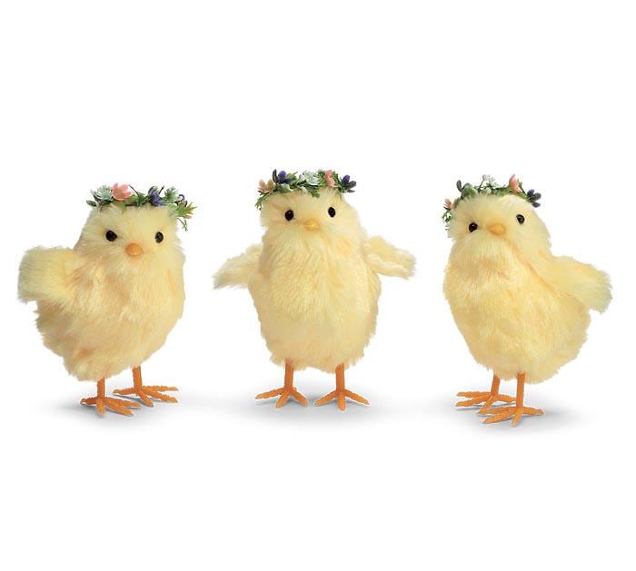 Add a touch of springtime charm to your space with this Little Yellow Chick Decor with Flower Headbands. This adorable set features three sweet chicks, each with its own playful pose and personality: one facing right, one facing left, and one facing forward. Dressed in delicate flower headbands, these fluffy yellow chicks bring a cheerful, whimsical feel wherever they’re displayed.