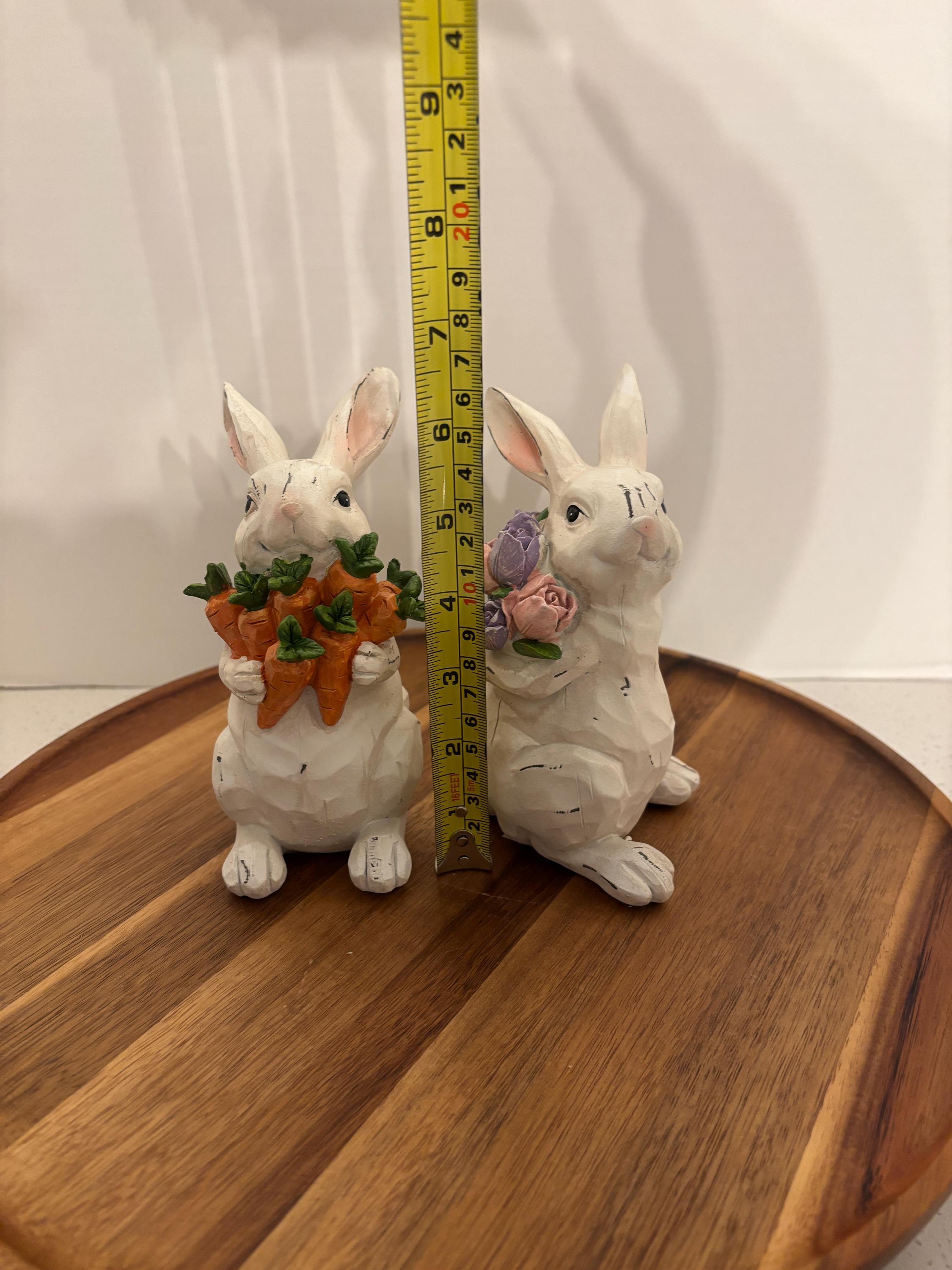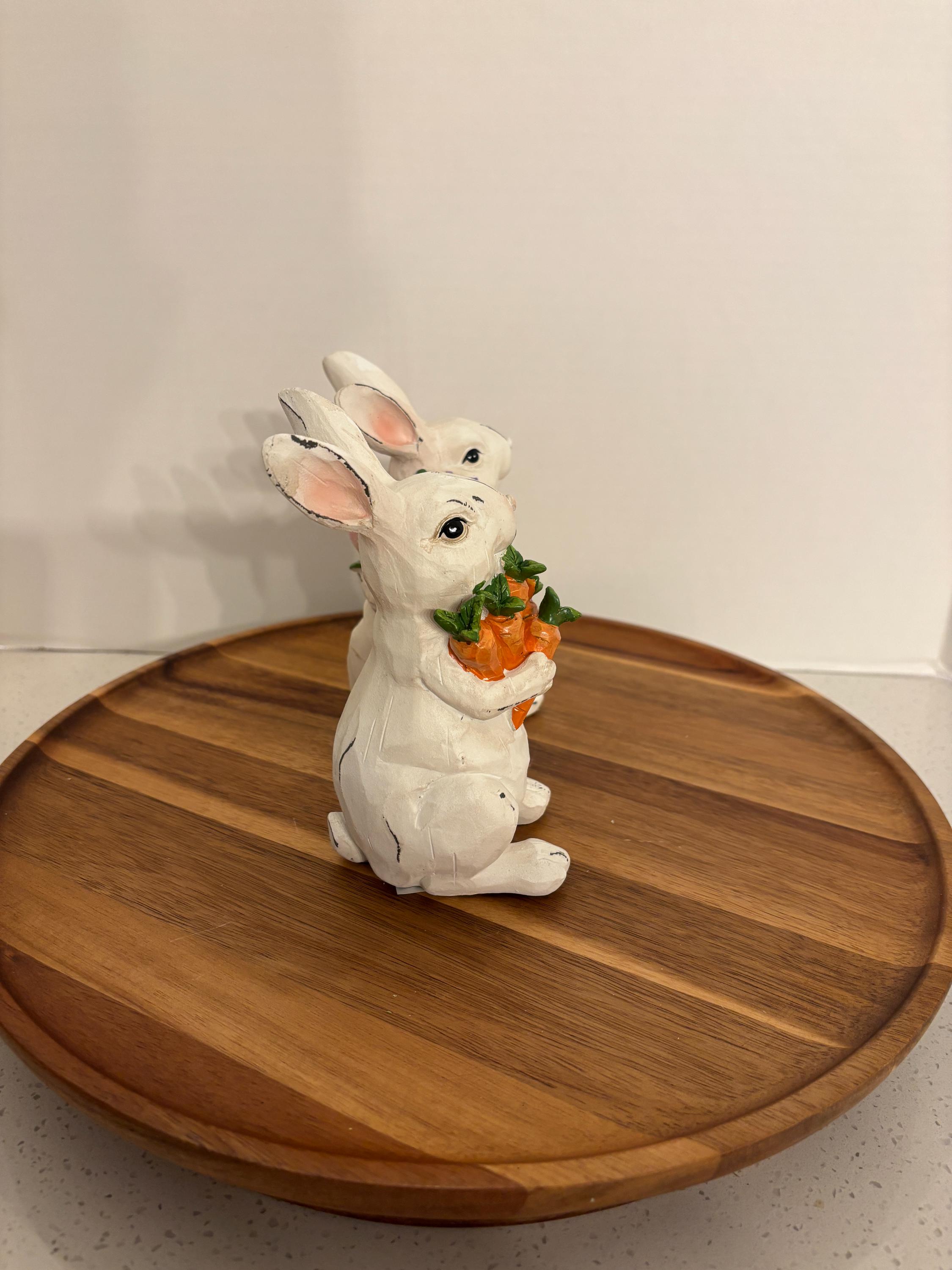 Add a touch of springtime charm to your décor with this delightful bunny pair. These Bunny Duo Figurine features two sweet bunnies, each with their own cheerful harvest.