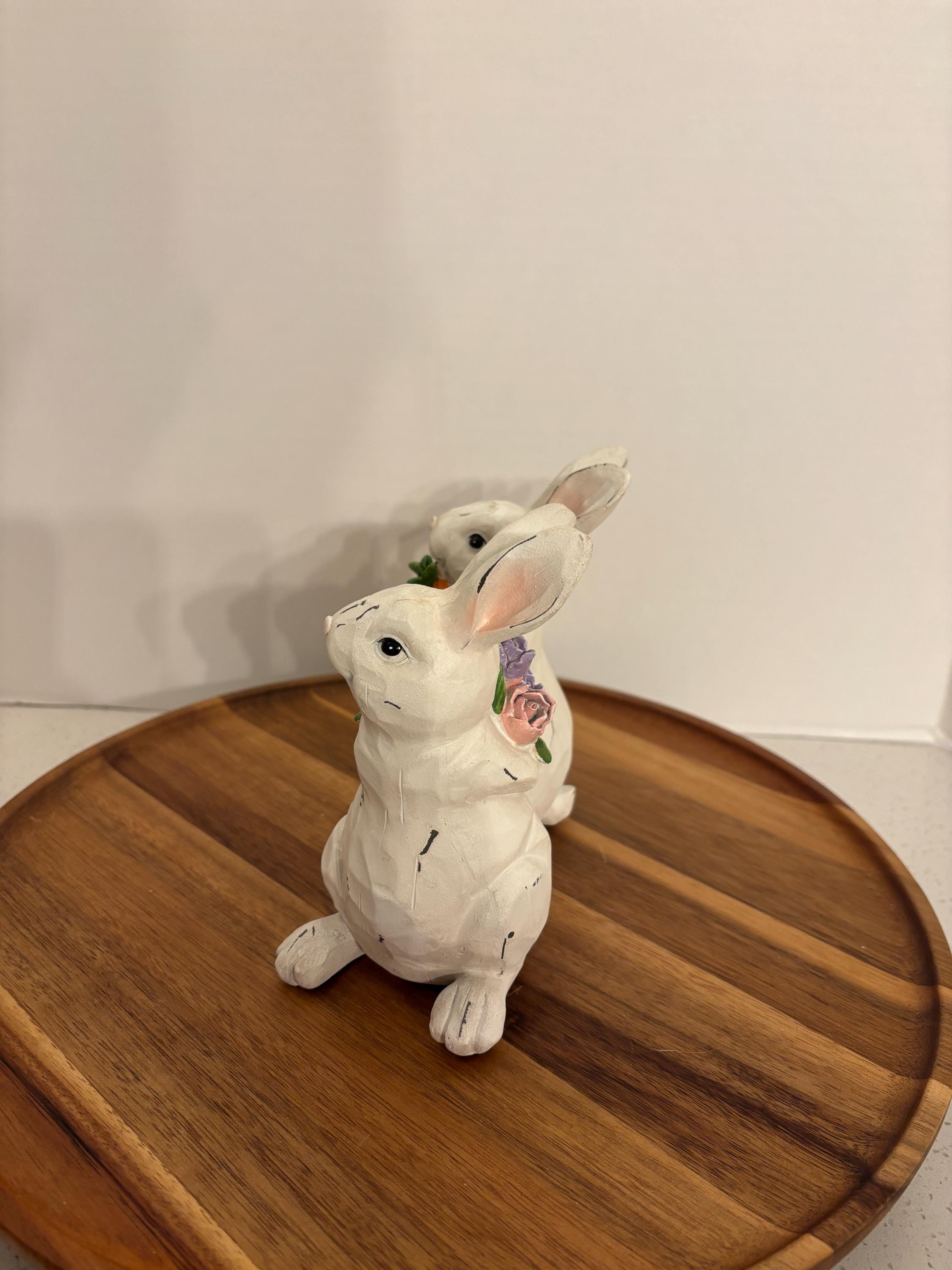 Ideal for tabletops, shelves, tiered trays, or seasonal displays, this bunny couple adds a touch of whimsy and affection wherever it’s placed.