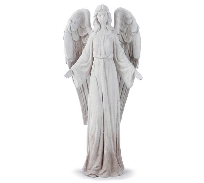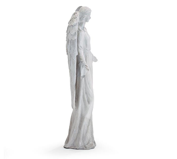 Add a graceful and serene presence to your space with this gray resin angel figurine, beautifully crafted to resemble hand-carved stone. Designed with a timeless, weathered finish, this piece captures the look of natural stone while offering the durability and lightweight convenience of resin.