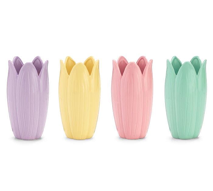 Add a fresh burst of springtime charm to your décor with this beautiful assortment of tulip-shaped ceramic vases or planters. Designed with soft, curved petals that mimic the graceful shape of a blooming tulip, these vases and planters bring a delicate and cheerful touch to any space.