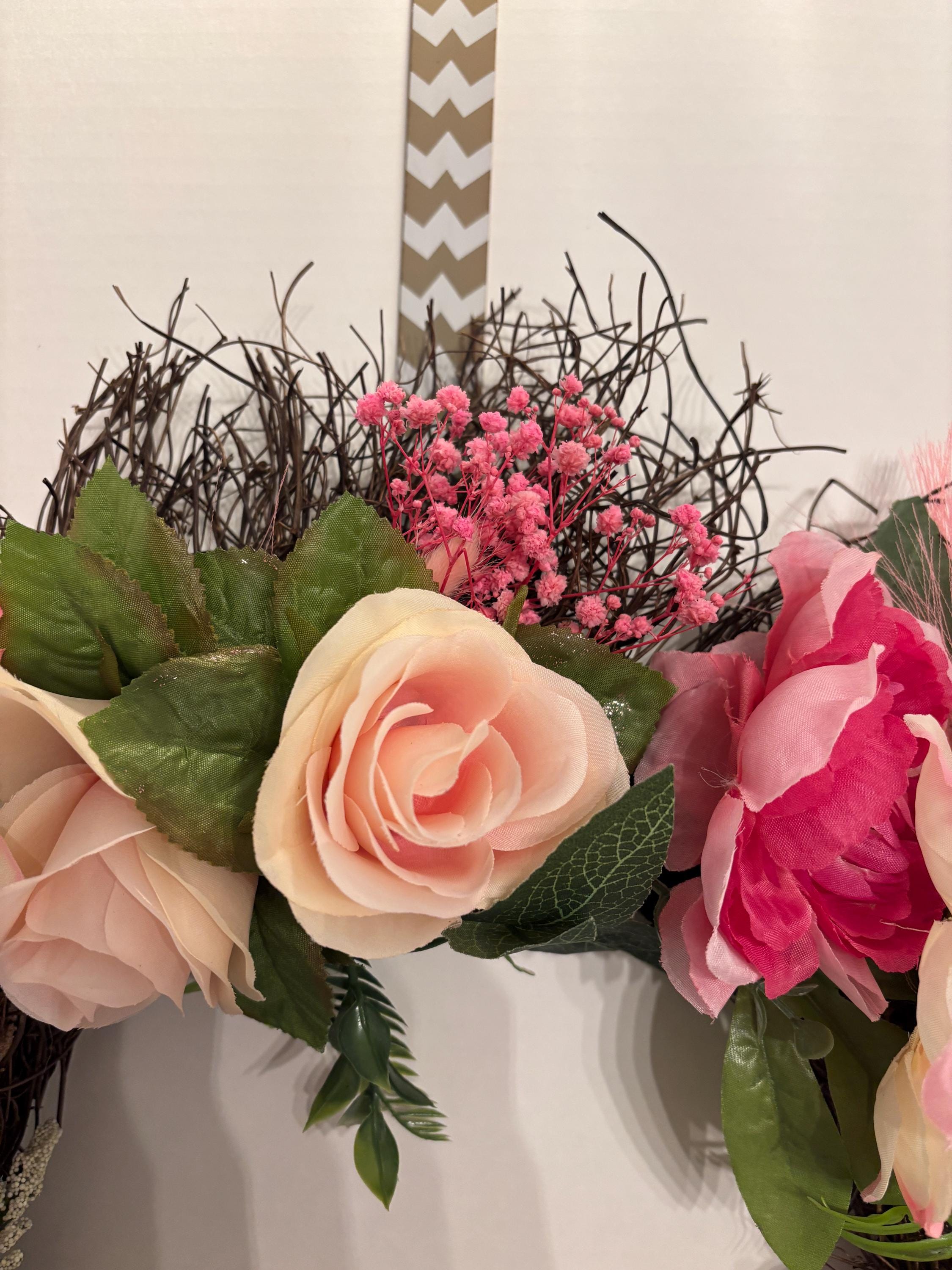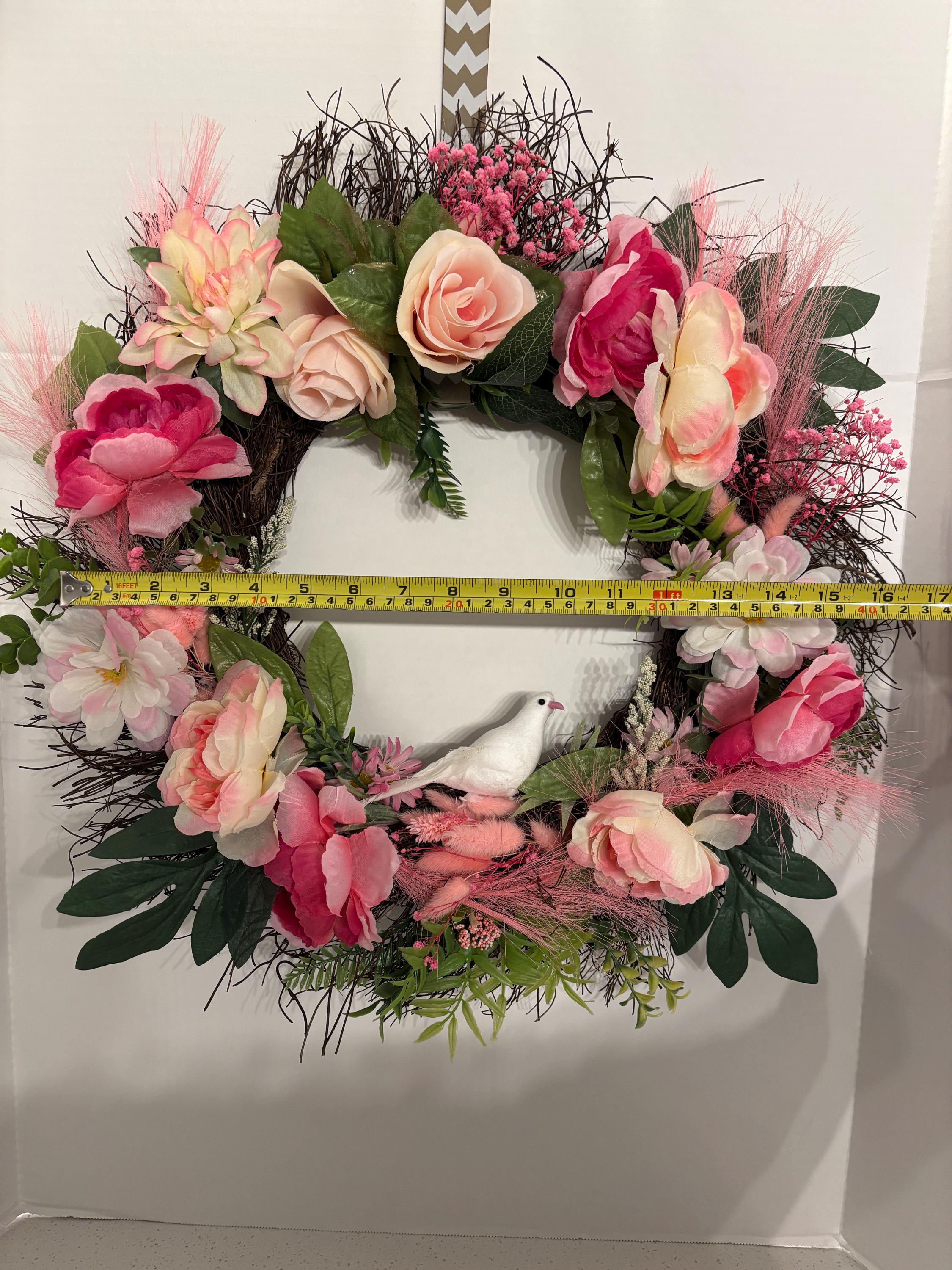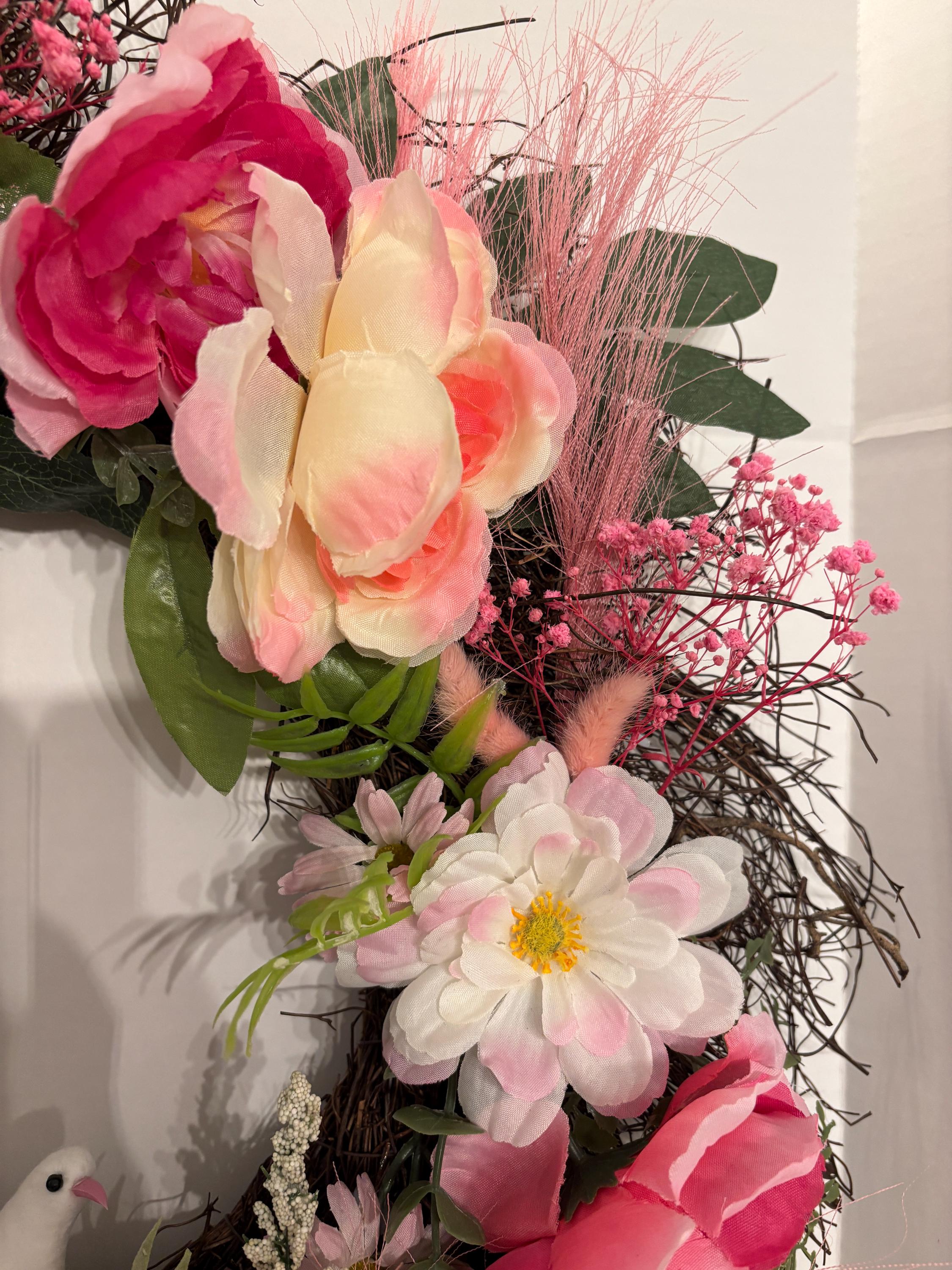 Perfect for spring decorating, weddings, housewarmings, or adding a romantic touch to your everyday décor. This wreath brings warmth, softness, and a welcoming feel to any space.