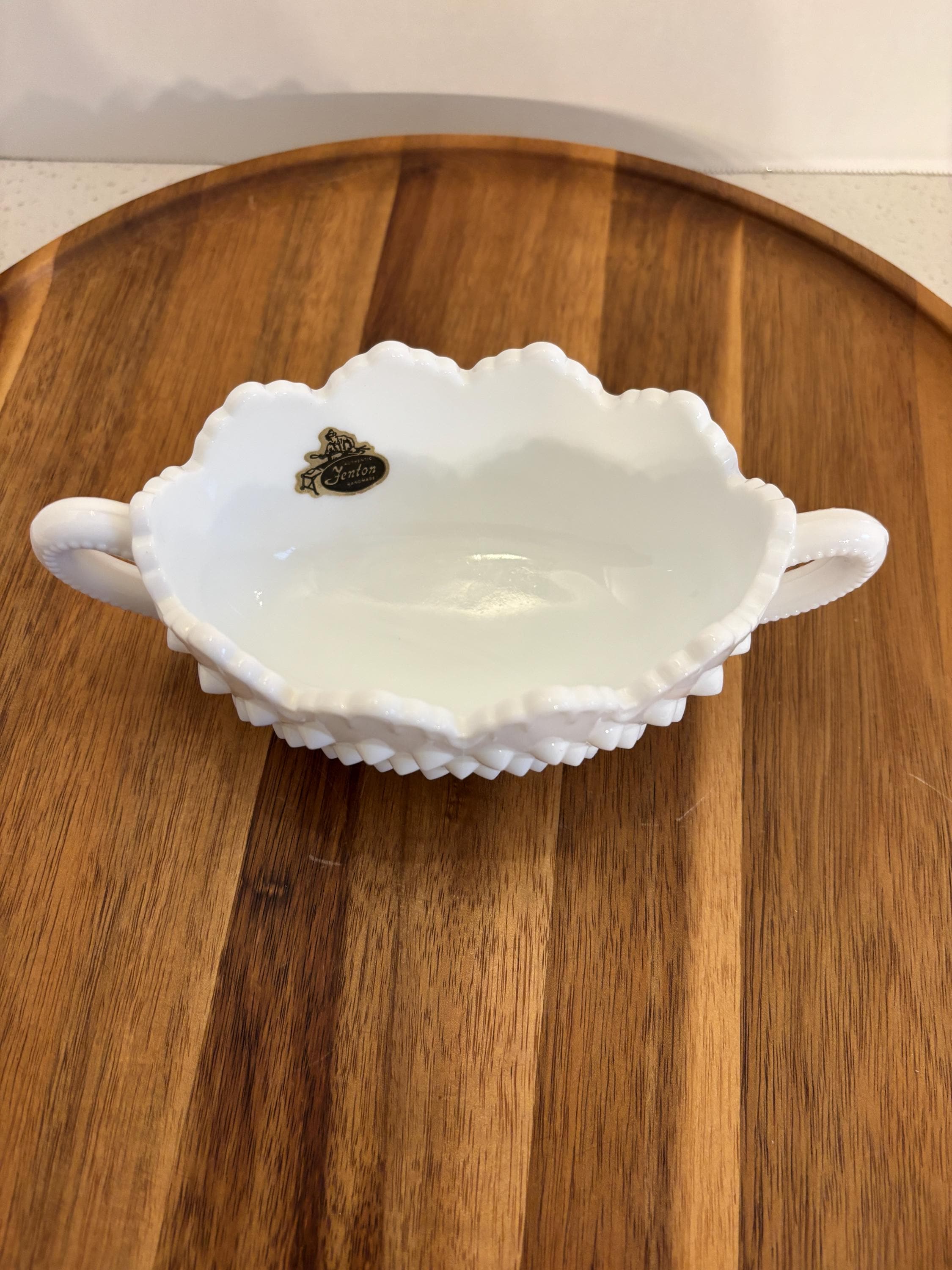 Crafted from Fenton’s signature opaque white milk glass, this basket brings vintage charm to any room — perfect for holding dried flowers, Easter treats, jewelry, or simply as a lovely decorative accent.